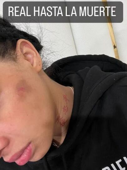 En respuesta, Yailin “La Más Viral” publicó una fotografía en la que se muestra con un moretón en el pómulo y escribió: “Real hasta la muerte”.