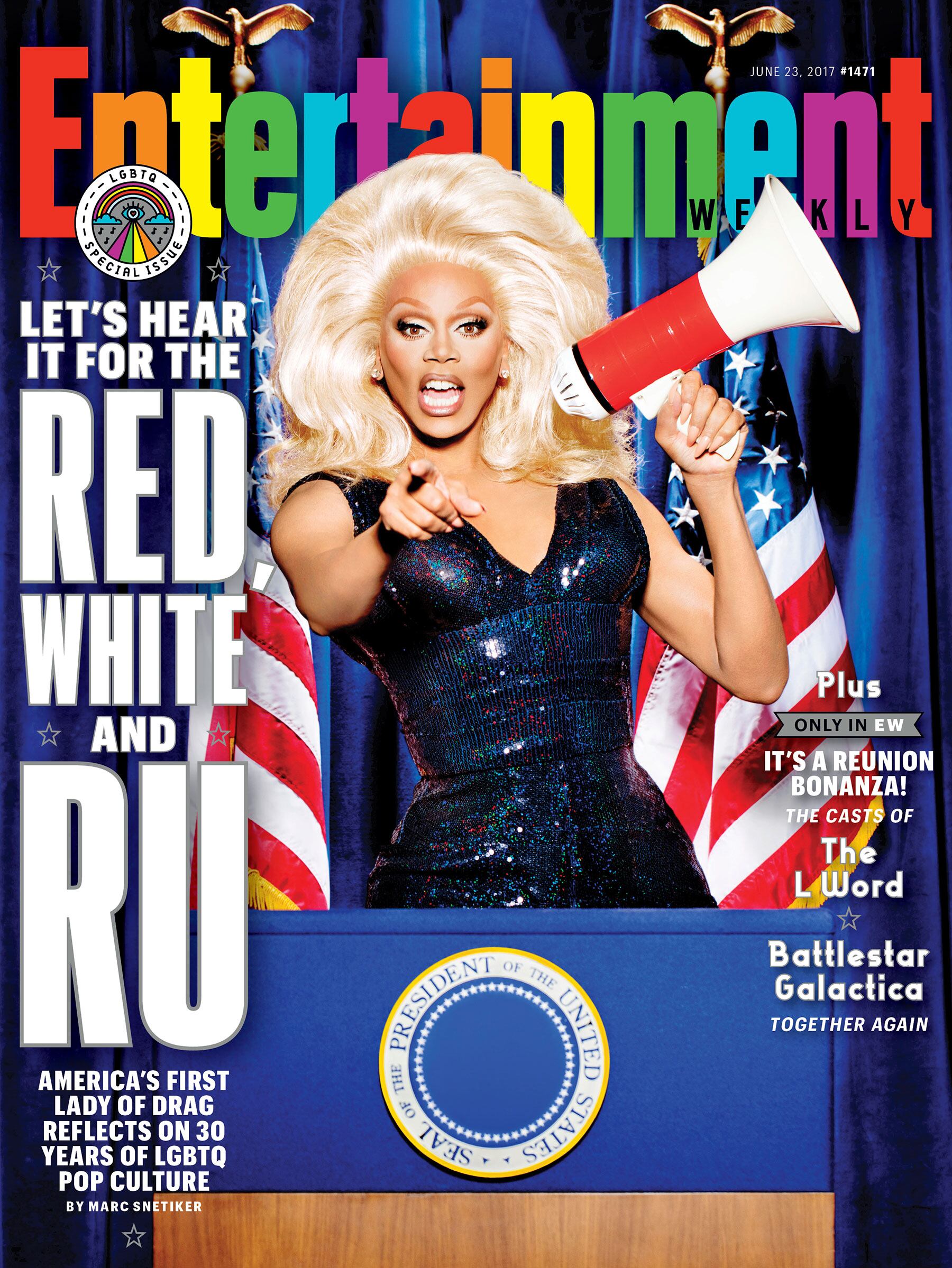Cada junio –mes de celebración del orgullo para la comunidad sexualmente diversa–, la publicación elige a una figura clave en el entretenimiento y este año, es RuPaul quien aparece allí en forma de Presidente de los Estados Unidos, llamando al pueblo a la acción.