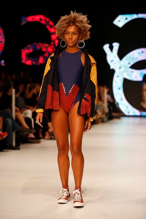 Después, piezas en combinaciones de colores nude, rojo, gris y blanco invadieron la pasarela, para dar paso a vestidos de baño y licras en colores neón combinadas con negro. Estas últimas prendas con formas mucho más osadas, tiras cruzadas y algunas combinaciones con prints florales.