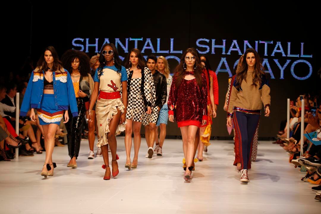 Una exquisita mezcla y superposición de prints en colores que remiten al pop art fue bien recibida por el público. Diseños para una mujer sofisticada pero divertida invadieron la pasarela. Shantall jugó con prints de triángulos, polka dots y checkers. Los corazones y las estrellas fueron personajes en sus piezas y resaltaron en su colección.