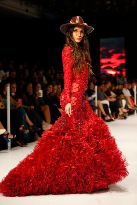 El diseñador cerró su presentación con un vestido de gala rojo, que, según confesó, es uno de sus colores favoritos por el alto impacto que genera.