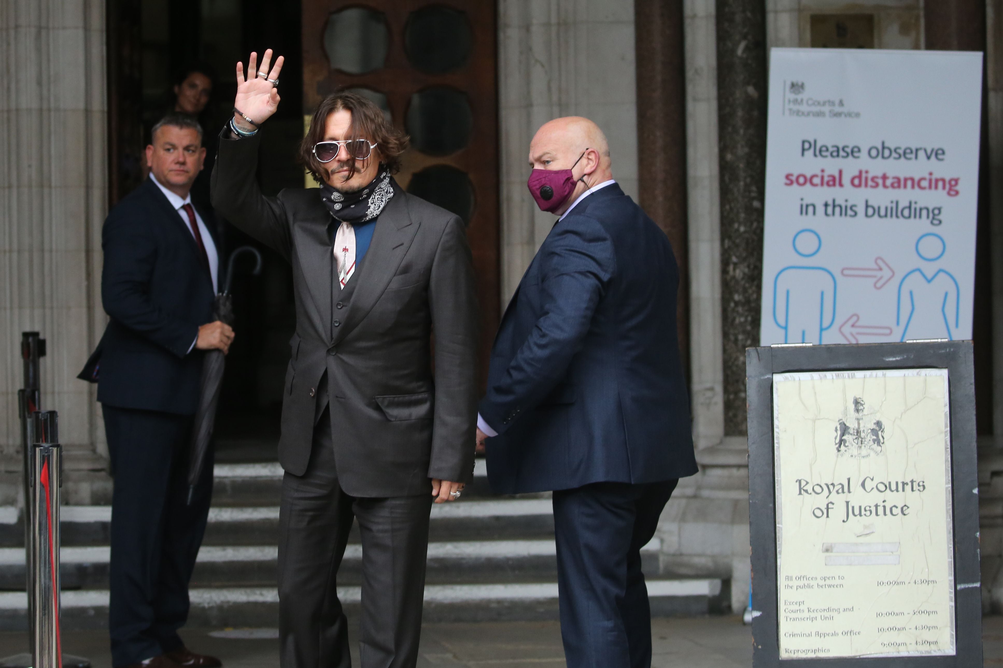 Con la cara cubierta con un pañuelo, los exesposos llegaron por separado a la Alta Corte de Londres, que examina durante tres semanas el caso del The Sun y su propietario News Group Newspapers” (NGN).