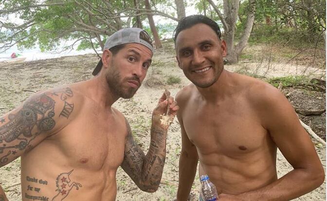 Ramos celebró estar en buena compañía y subió una foto en la que etiquetaba al portero Keylor Navas y las esposas de ambos, la tica Andrea Salas y la española Pilar Rubio.