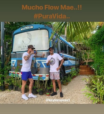 En otro curioso post, vuelven a aparecer Ramos y Navas, en pantaloneta, al lado de un bus y junto a la siguiente leyenda: “mucho flow mae!!!, Pura Vida”.