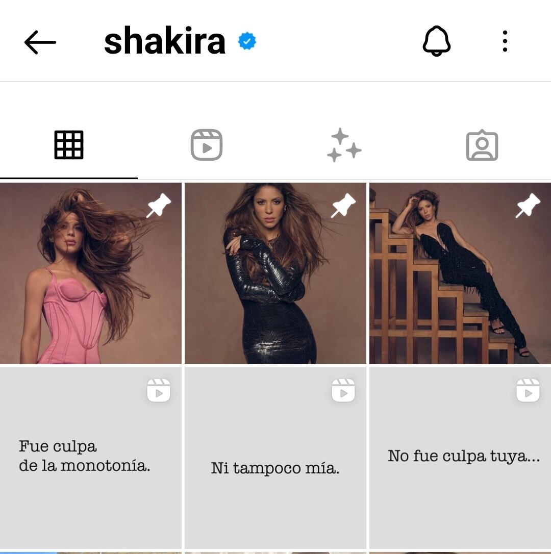 A través de sus cuentas de Twitter e Instagram, Shakira compartió unos videos cortos con estilo cinematográfico en los que escribió varios mensajes. “La culpa no fue tuya”, publicó el jueves; el viernes siguió con “Ni tampoco mía” y este sábado terminó con “Fue culpa de la monotonía”.