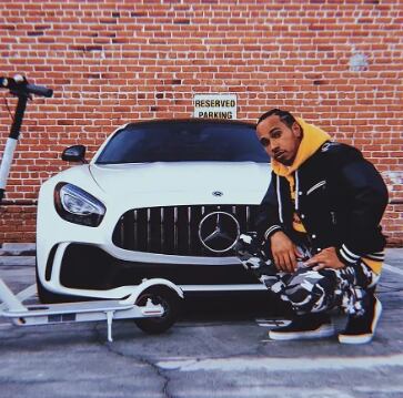 Con 585 CV, es capaz de alcanzar una velocidad máxima de 318 km/h y acelerar de 0 a 100 km/h en 3,6 segundos. Hamilton usa este deportivo biplaza en su versión blanca para desplazarse cuando está en su casa de Los Ángeles. Su coeficiente aerodinámico de 0,35 es el más bajo del AMG GT.