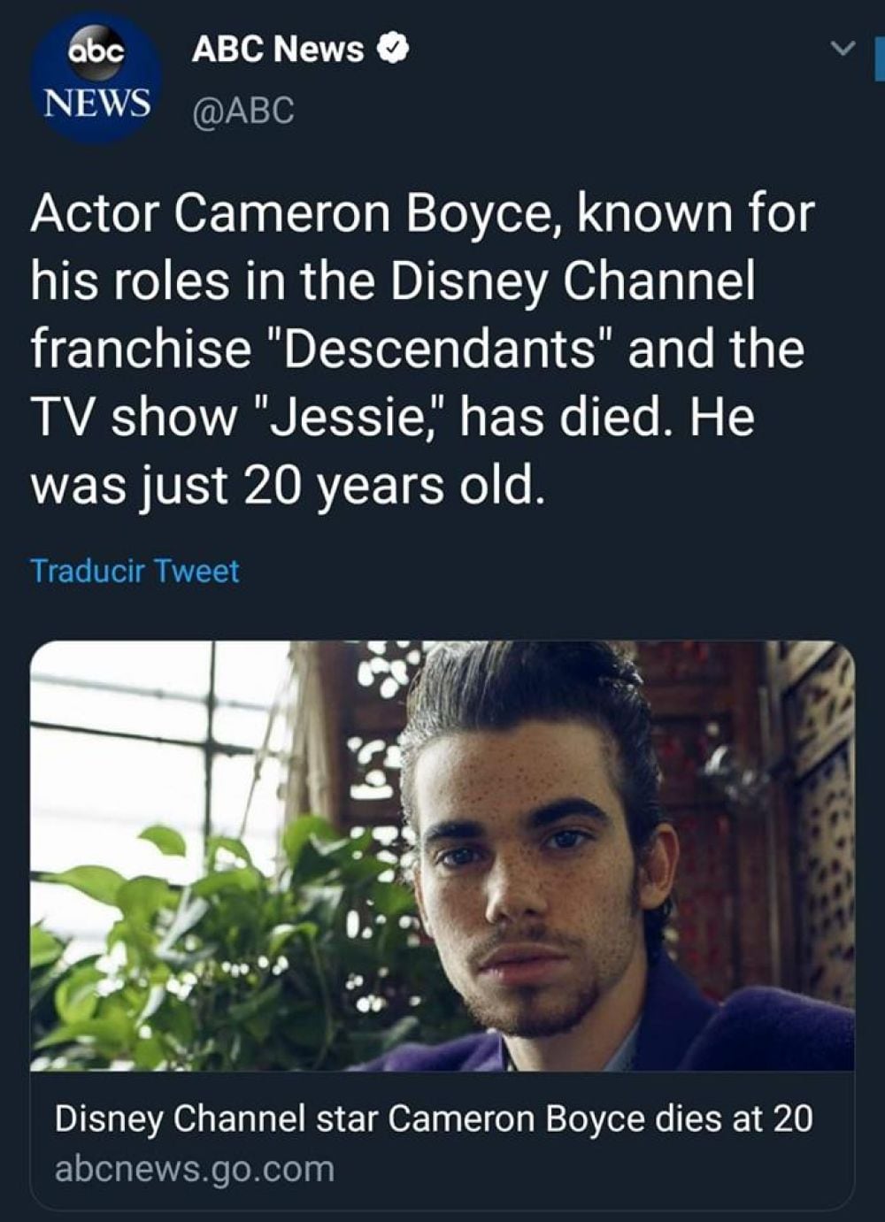 Robert Iger, CEO de Disney, compartió el comunicado oficial de la compañía: “The Walt Disney Company lamenta la pérdida de #CameronBoyce, que fue un amigo de muchos de nosotros, y lleno de tanto talento, corazón y vida, y demasiado joven para morir. Nuestras oraciones van a su familia y a sus amigos”, dice el tuit de Iger.