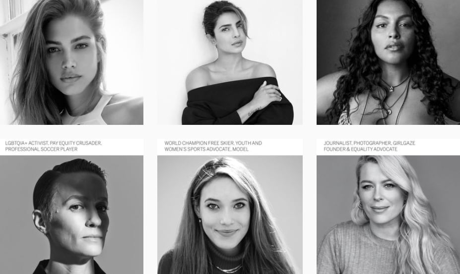 Entre ellas se encuentran la estrella del fútbol, de 35 años, y quien se caracteriza por llevar su cabello corto en color rosa, Megan Rapinoe; la esquiadora de estilo libre chino-estadounidense de 17 años, Eileen Gu, a quien pronto veremos en las olimpiadas; la modelo birracial de 29 años y defensora de la inclusión Paloma Elsesser; y la actriz india de 38 años, Priyanka Chopra.