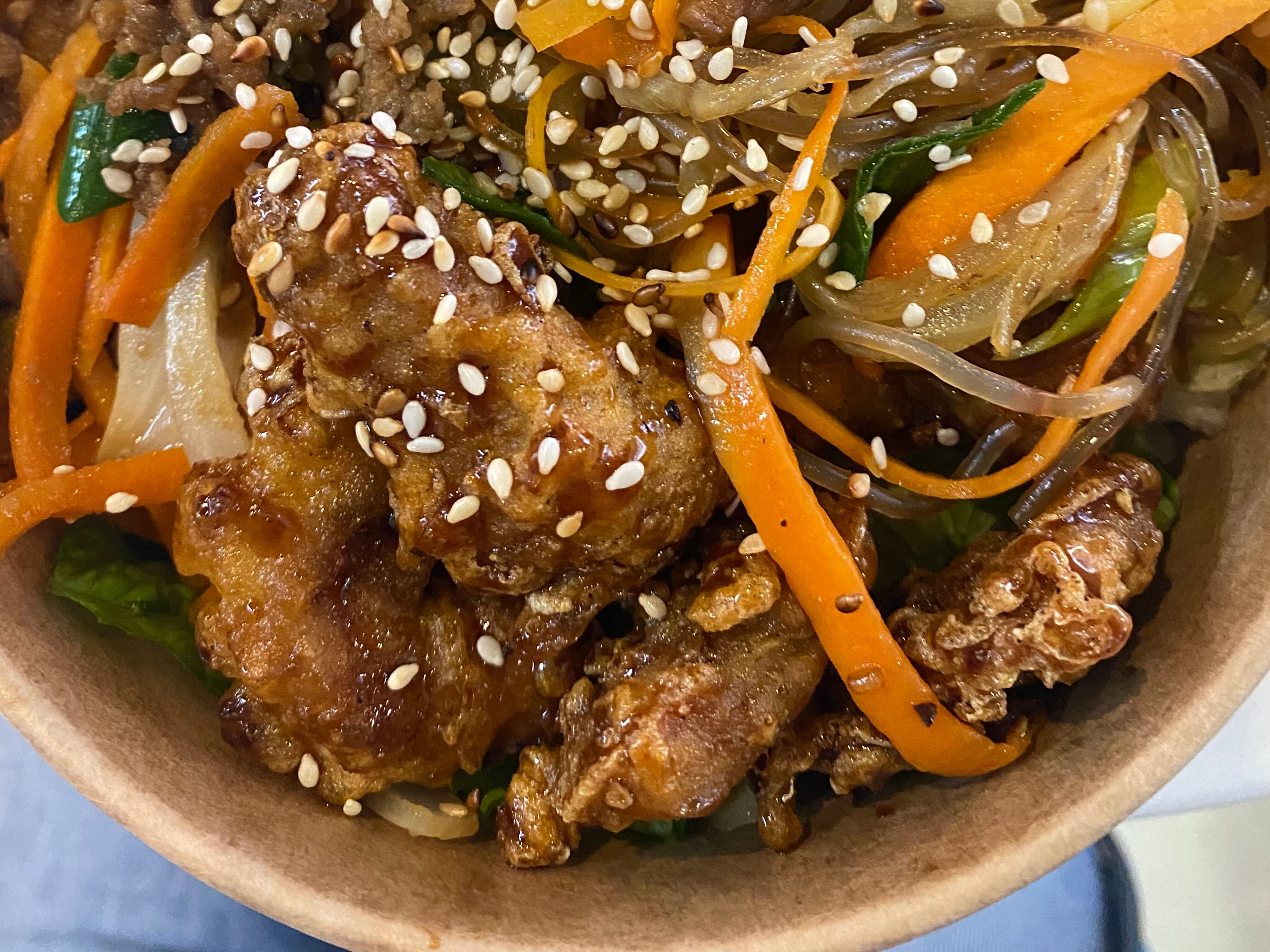 En el lugar (fui a Curridabat, hace poco abrieron un local en Escazú) el personal es gentil y responden todas las dudas. Además, el personal advierte que hay platillos con picante (muy tradicional de Corea) y pueden armar los bowls al gusto de los comensales, en mi caso, como no como cerdo, me ofrecieron opciones para sustituir esa proteína.