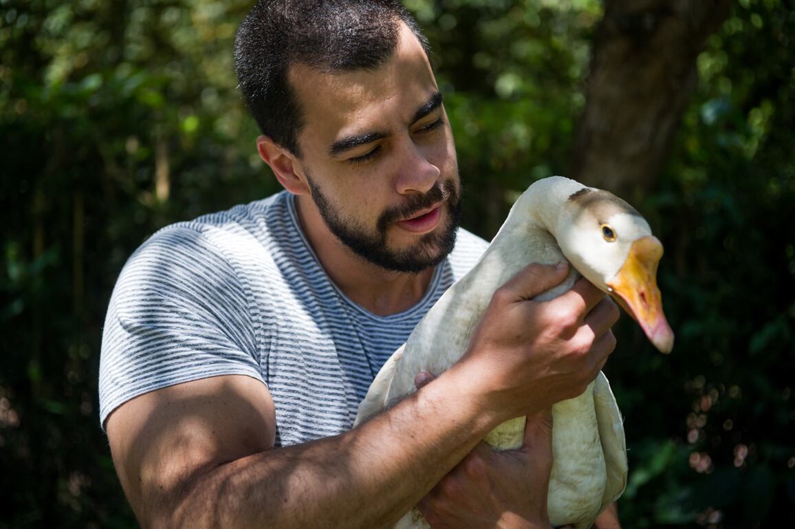 Sus gatos, patos, gansos y una perrita son sus preferidos para pasar el tiempo libre. Lo demás lo dedica a trabajar (es empleado de una agencia de mercadeo), a generar contenido para su fanpage, a entrenar y a comer.