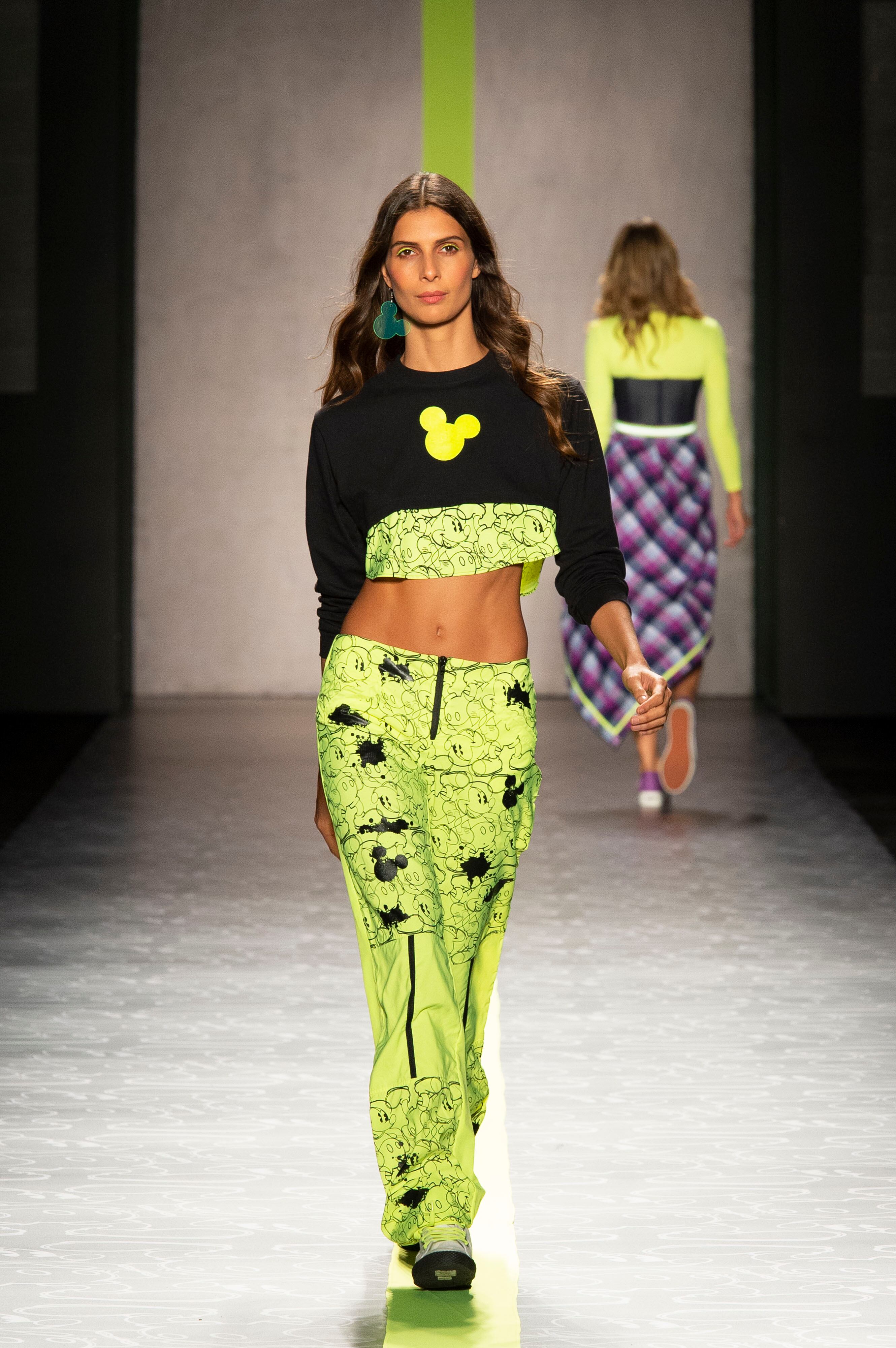 En esta oportunidad, en pasarela se vio la figura de Mickey Mouse en prendas posmodernas, coloridas y urbanas. En total fueron 20 looks los que homenajearon al dibujo animado.