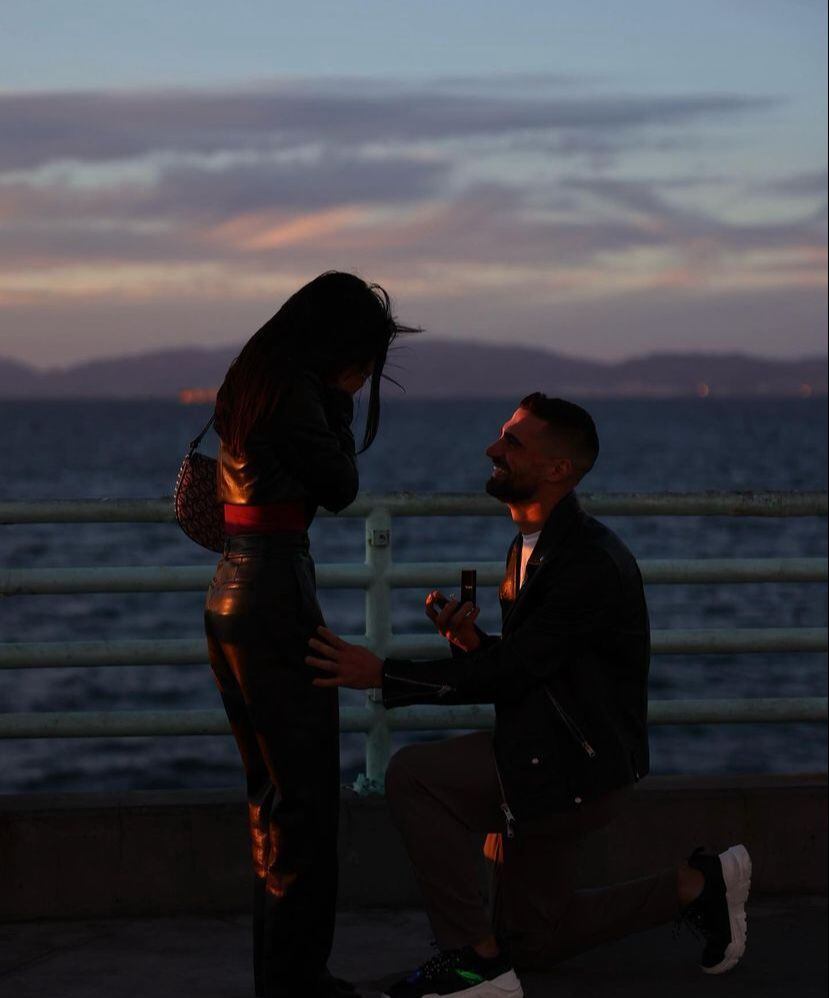 A través de redes sociales, Sebastián compartió algunos momentos del romántico instante; en una de las fotos se observa que él se hinca con la cajita que contenía el anillo.