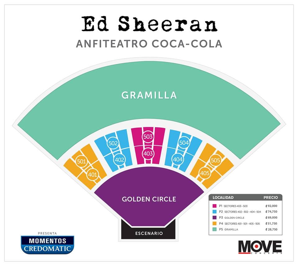 Los boletos costarán ¢28.750 en zona de gramilla; ¢51.750 en zonas 401, 501, 405 y 505; ¢69.5000 en golden circle; ¢74.750 en zonas 402, 502, 404 y 504 y ¢92.000 en las zonas 403 y 503.