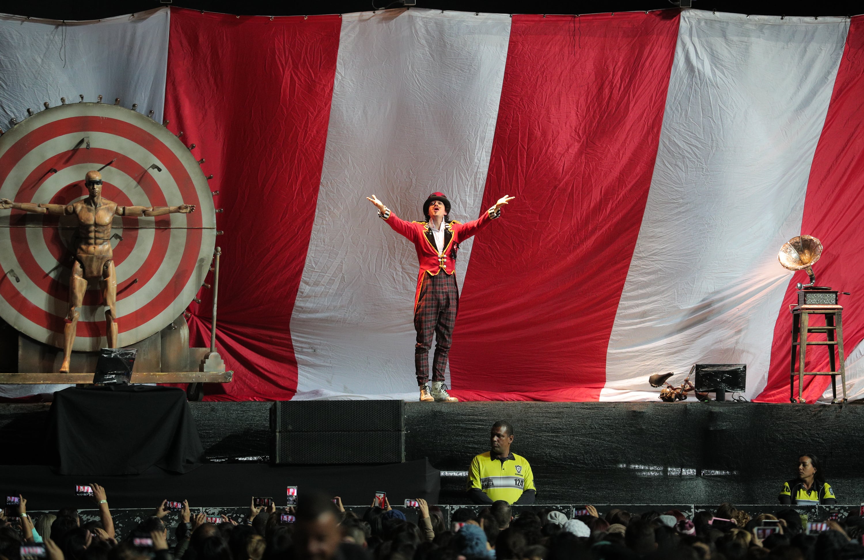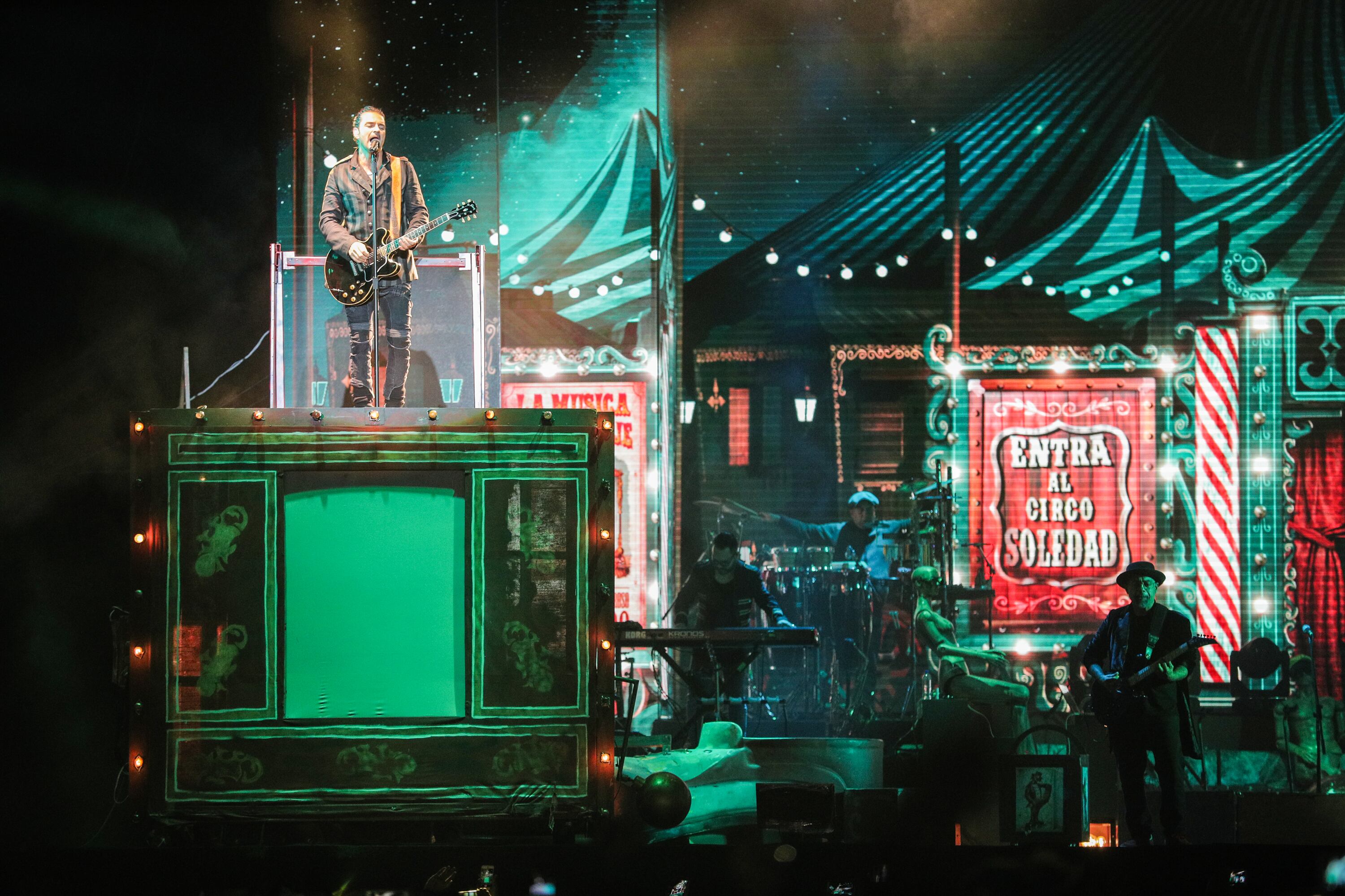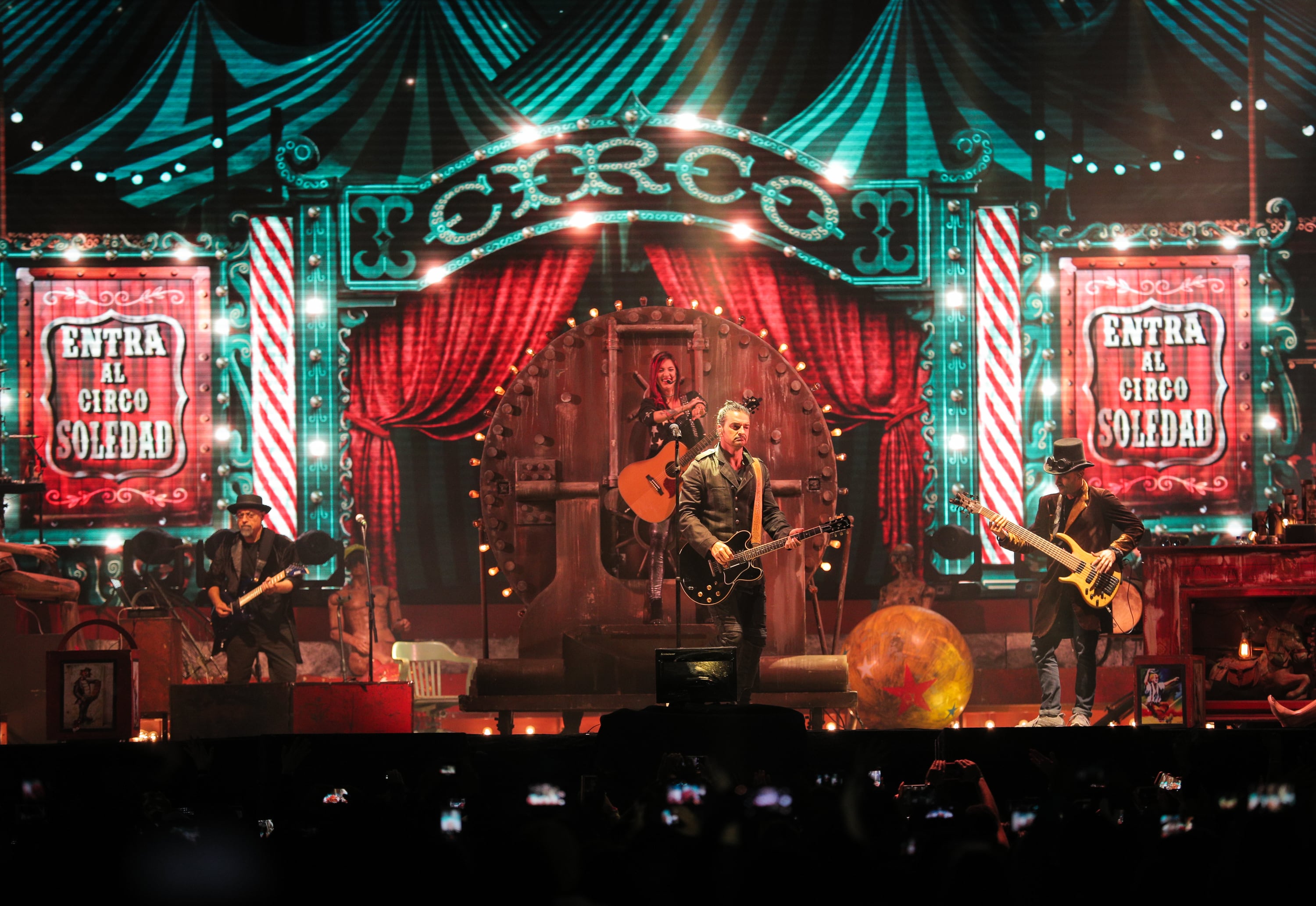 Tan alto como es, con la guitarra en mano, salió de una especie de caja de sorpresas que adornaba el escenario de su Circo Soledad que, la noche de este viernes 26 de enero fue todo menos solitario. Como él mismo lo dijo realmente no estaba tan solo.
