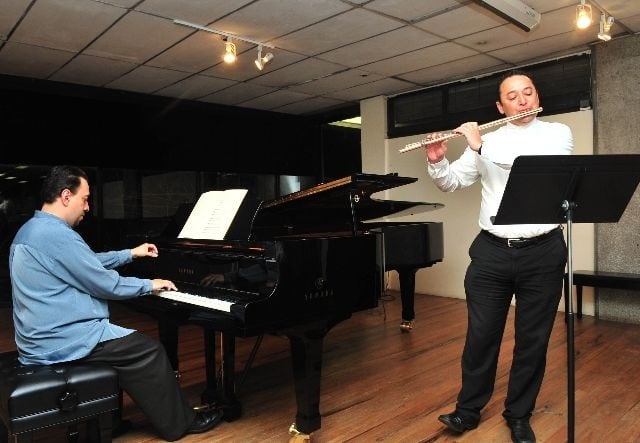 Gabriel Goñi, flauta, y Manuel Matarrita, piano, interpretaron una pieza poco conocida de Chopin. Jorge CastilloDúo.