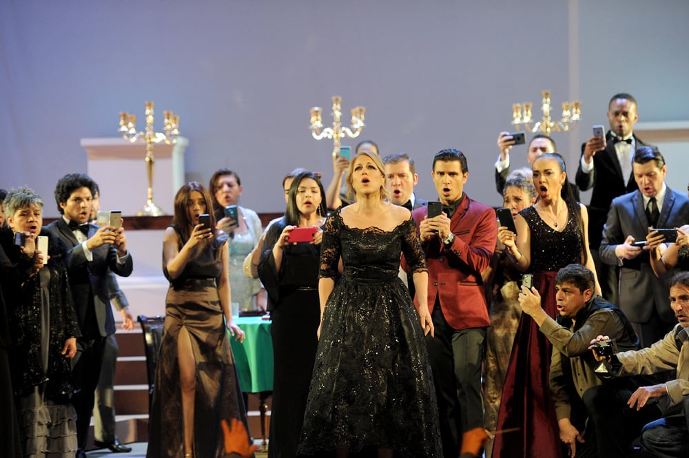 En todo caso, confieso que disfruté de la puesta en escena de José Darío Innella de La traviata en el estreno del domingo pasado en el Teatro Melico Salazar y que no me molestó en lo más mínimo el uso de aparatos electrónicos, ni un decorado y vestuario entre ecléctico y hipster, lo cual, sin duda, resultó conveniente para economizar en trajes de gitanos, toreros, damas de largo y en el frac de nobles caballeros.