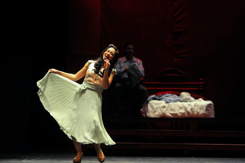 Me complace resaltar, en mi opinión, una puesta en escena novedosa a partir de encuadres del telón, figurantes en el papel del mobiliario y una sugerente iluminación en las escenas de mayor dramatismo.
