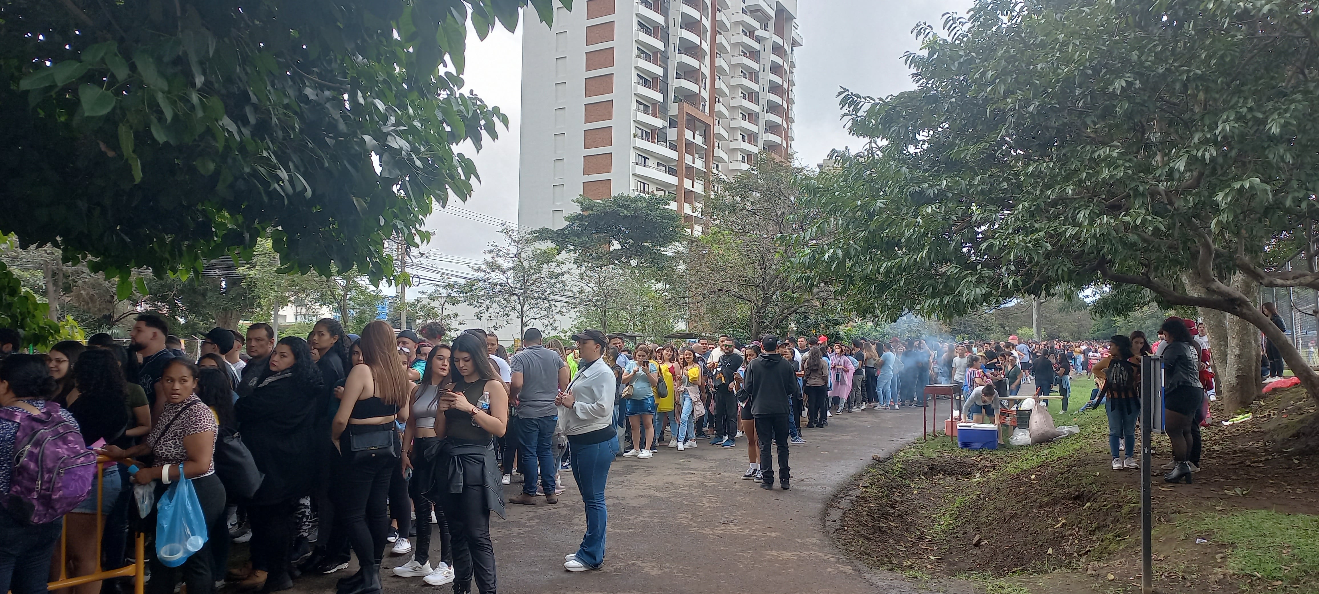 Veralyn Chacón es una de los cientos de fans que, desde horas de la madrugada, llegaron este sábado a las afueras del Estadio Nacional con la intención de poder estar frente a su ídolo Daddy Yanke. La joven, vecina de Alajuelita se encuentra entre las primeras personas de la fila para gramilla, pues llegó desde las 4 a. m.