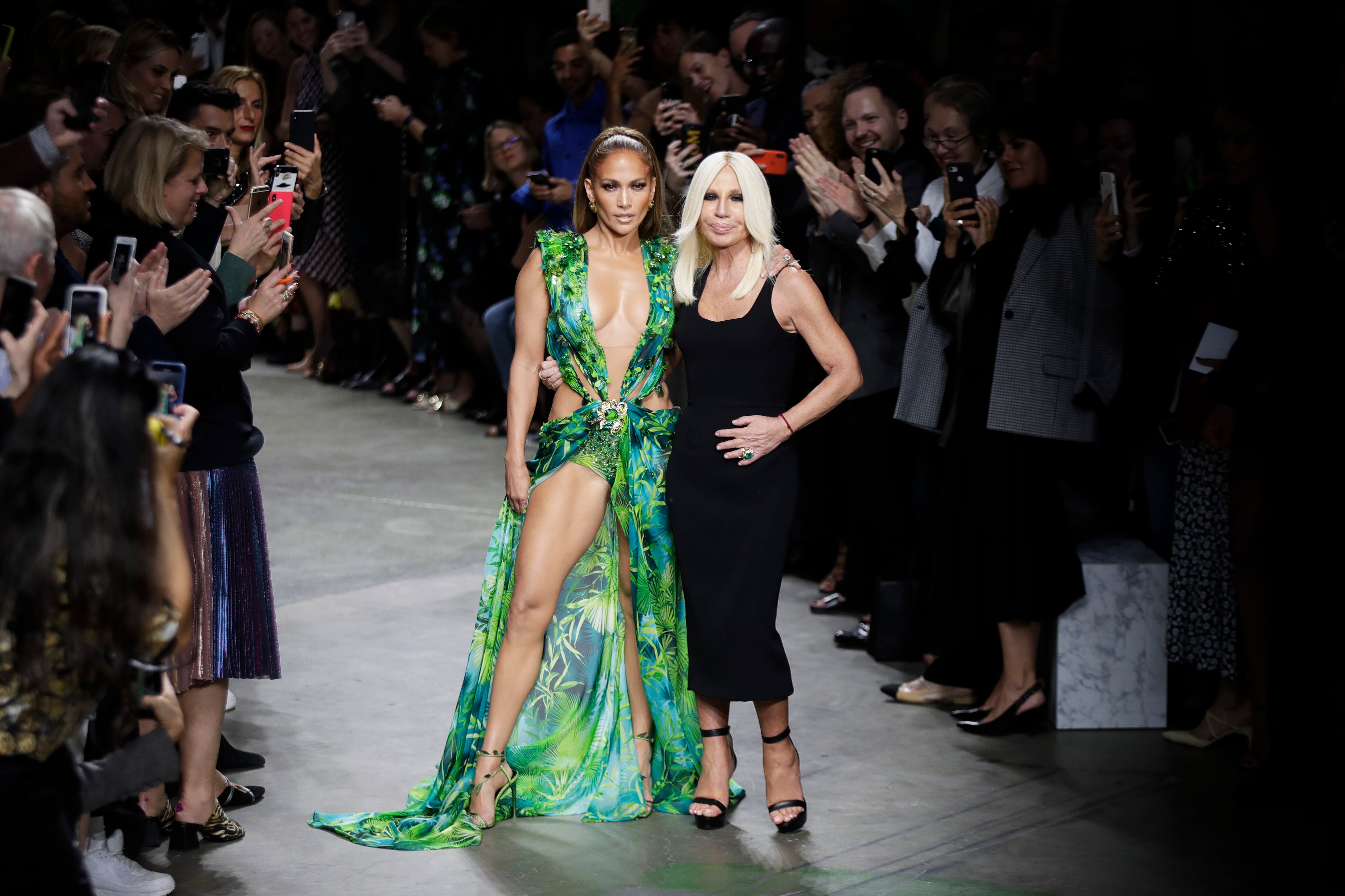 La cantante y actriz latina estadounidense Jennifer López causó sensación este viernes en la pasarela del Milan Fashion Week al desfilar para la casa diseñadora Versace.