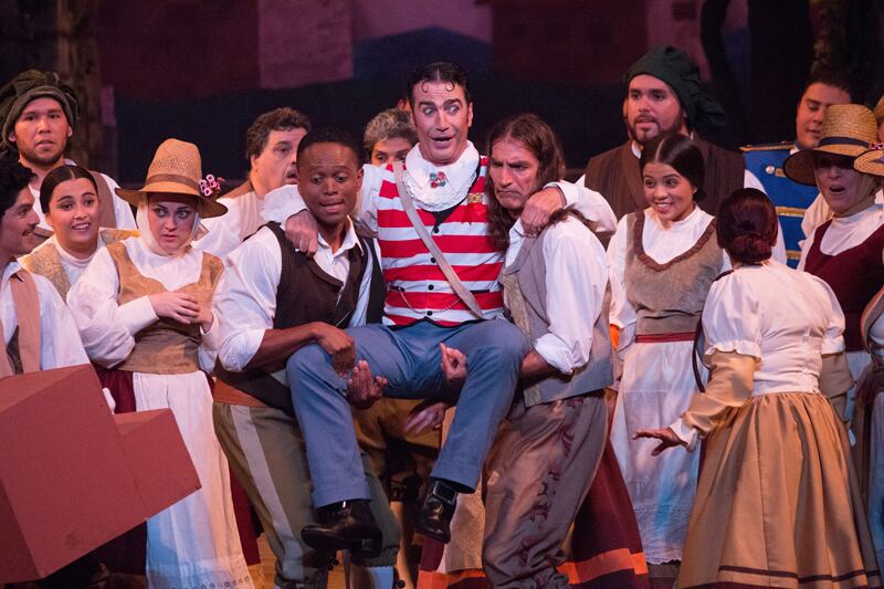 Los nacionales José Arturo Chacón y Keren Padilla brindaron firmes interpretaciones, muy aplaudidas, en una ópera que exige timing cómico a papeles de por sí duros vocalmente.