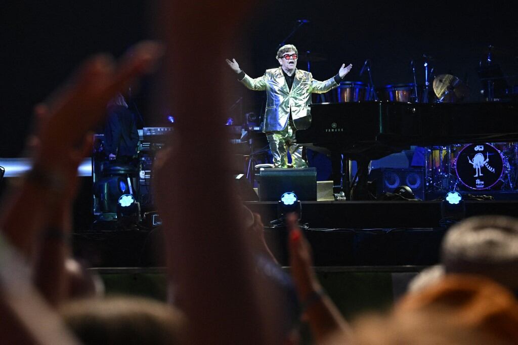 Según la agencia de noticias AFP, Elton John se sentó al piano pasadas las 8 p. m. (6 p. m. GMT) entre los vítores de los 30.000 asistentes y comenzó el recital con uno de sus temas más populares: Bennie and the Jets, y luego con Philadelphia Freedom y I guess that’s why they call it the blues.