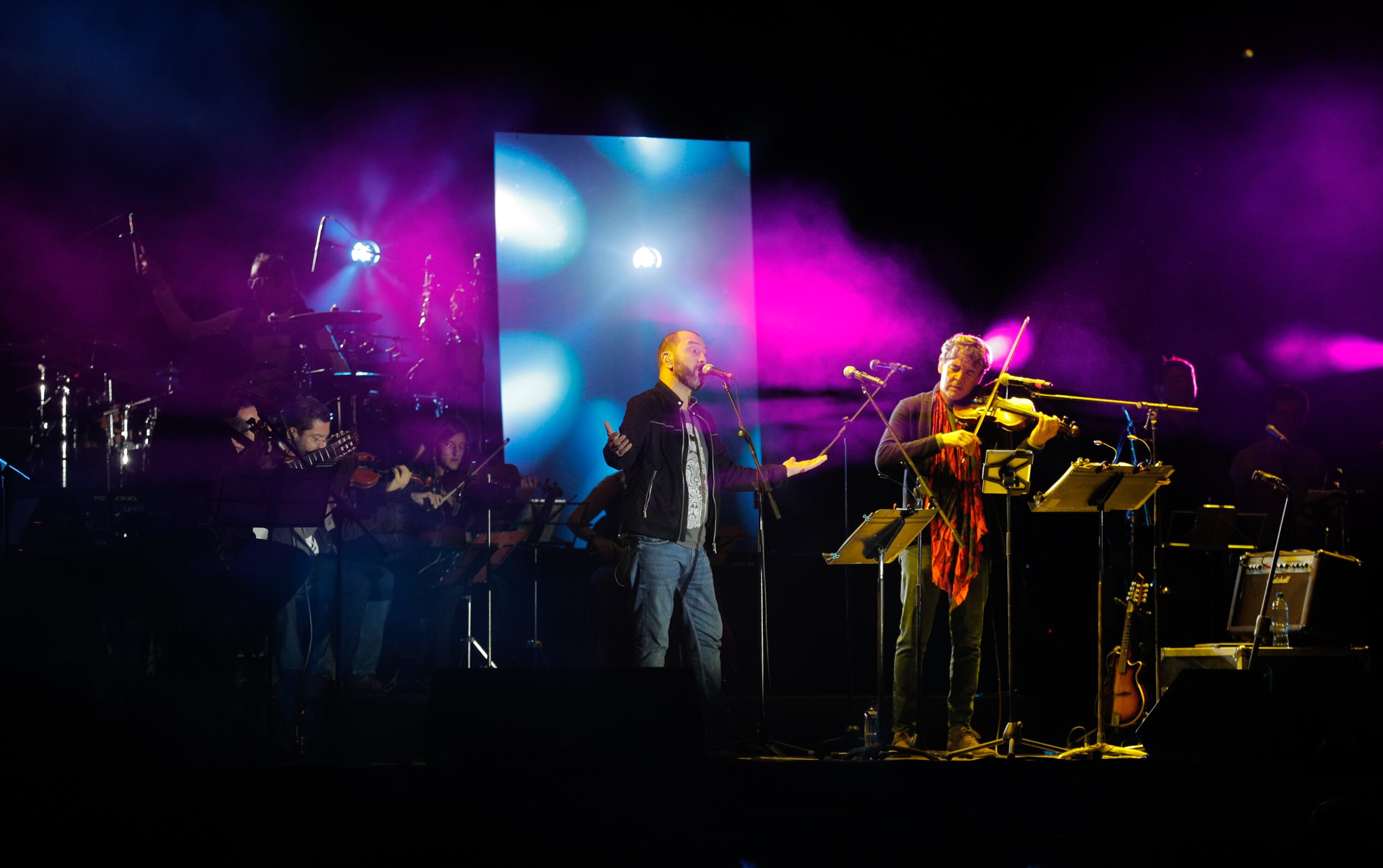 Después de una dinámica guiada por Tapado, el percusionista, llegaron al escenario Bernardo Quesada; Ricardo Ramírez, de Éditus, así como un grupo de cuerdas y metales que le dieron un toque orquestal a Muchacha y Luna.