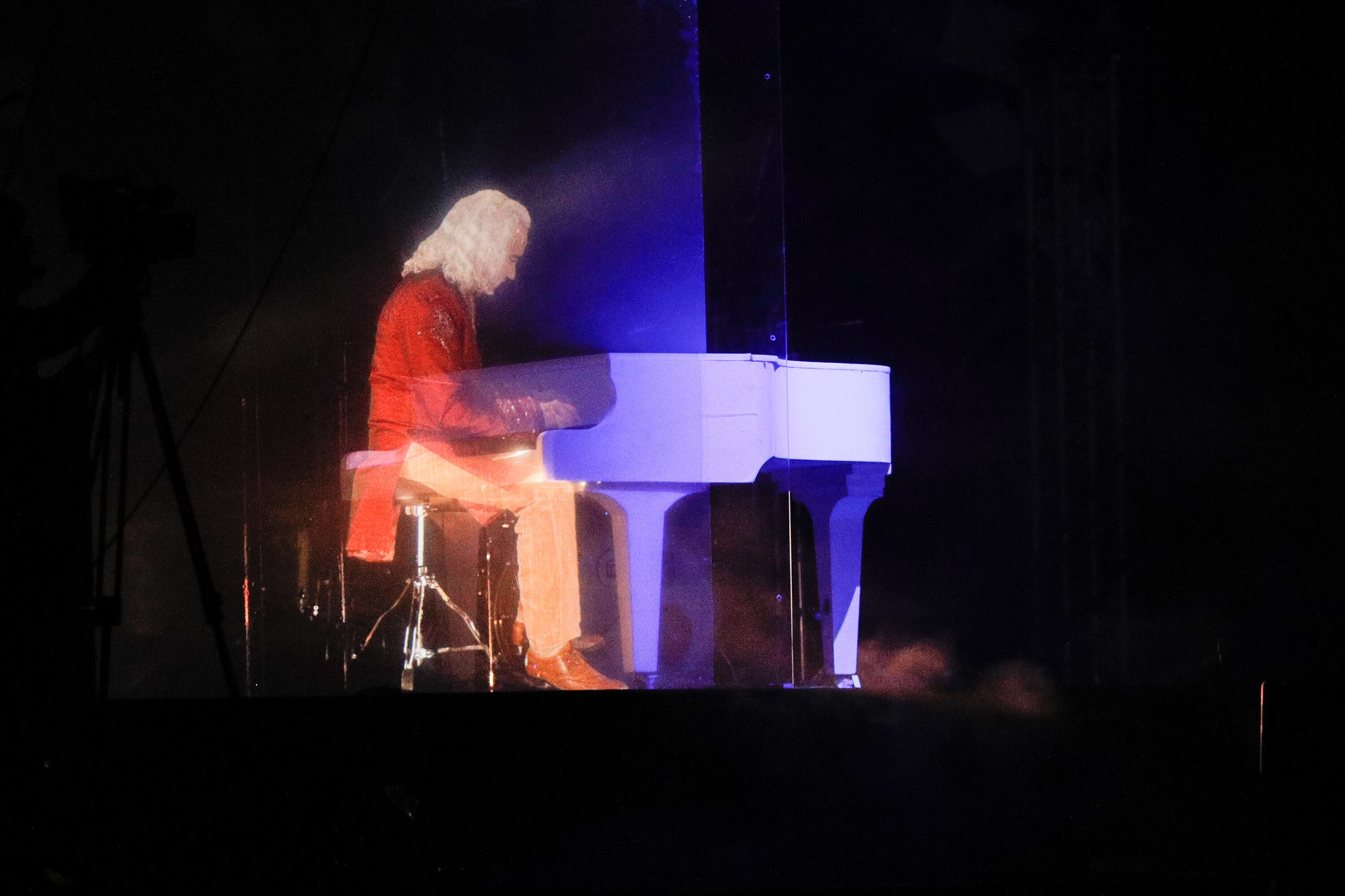 Dos hologramas de Obregón aparecieron en el escenario a tocar piano y marimba para la introducción de Como un pájaro. Esta aparición emocionó al público que podía ver y escuchar al exministro interpretar cada instrumento.