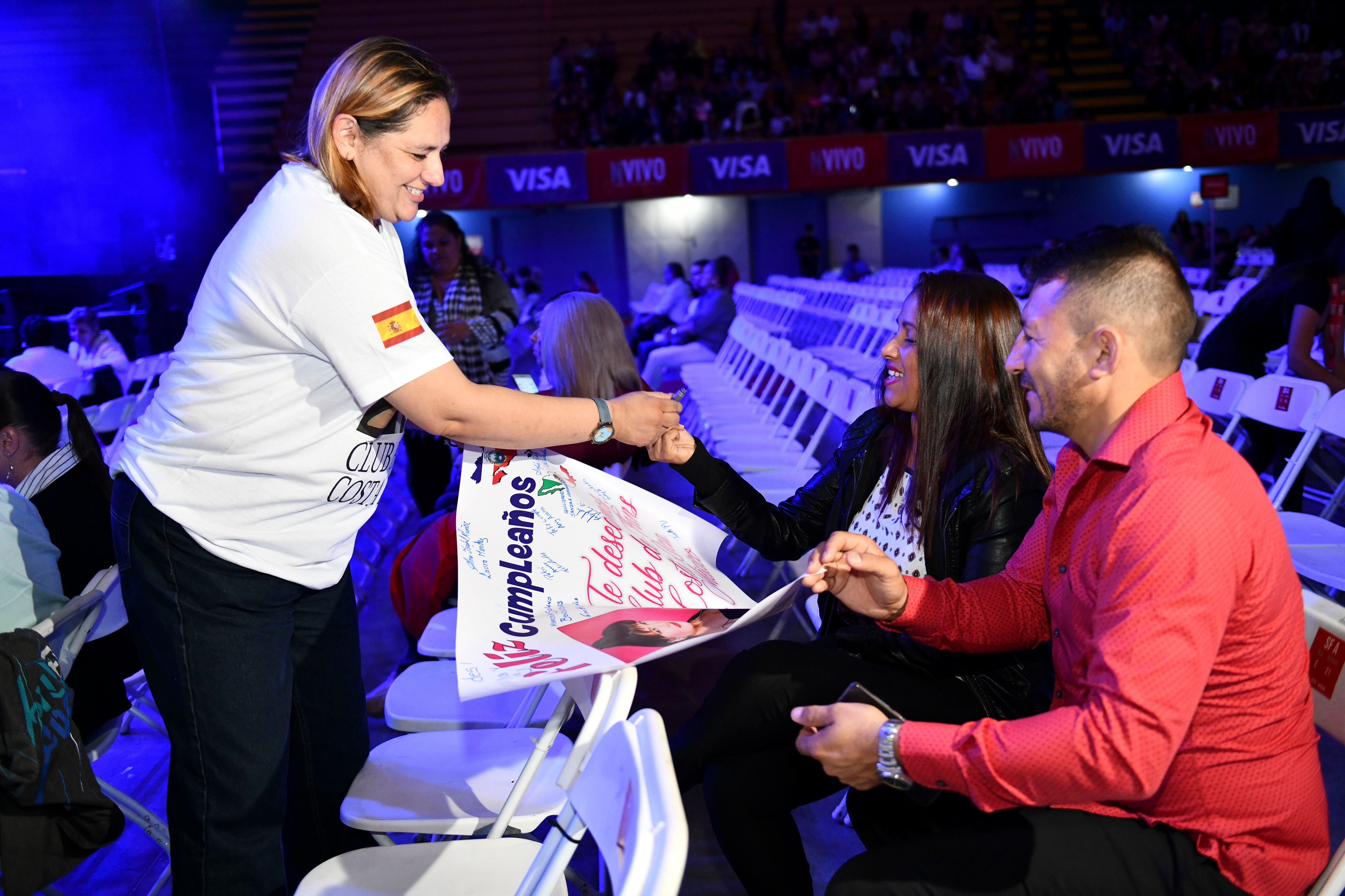 Llegó el turno de escuchar A esa y nuevamente el recinto herediano se volcó en gritos y aplausos de emoción, pero faltaba más. En las pantallas aparecieron en video Jennifer López y Marc Anthony cantando su propuesta de Olvídame y pega la vuelta como una breve introducción para la versión original ya en voz de quienes la hicieron famosa en los 80. El lugar estalló en locura.