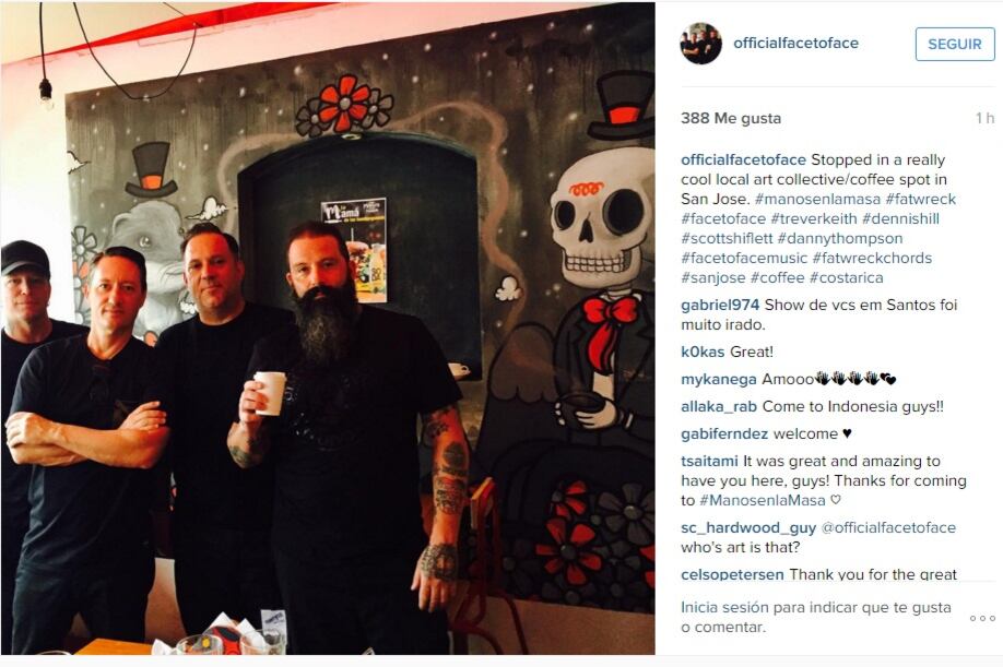 Los miembros de la agrupación también tomaron su propia fotografía y la compartieron esta noche en Instagram, con la leyenda: "Nos detuvimos en un local de arte colectiva/cafetería muy cool en San José".