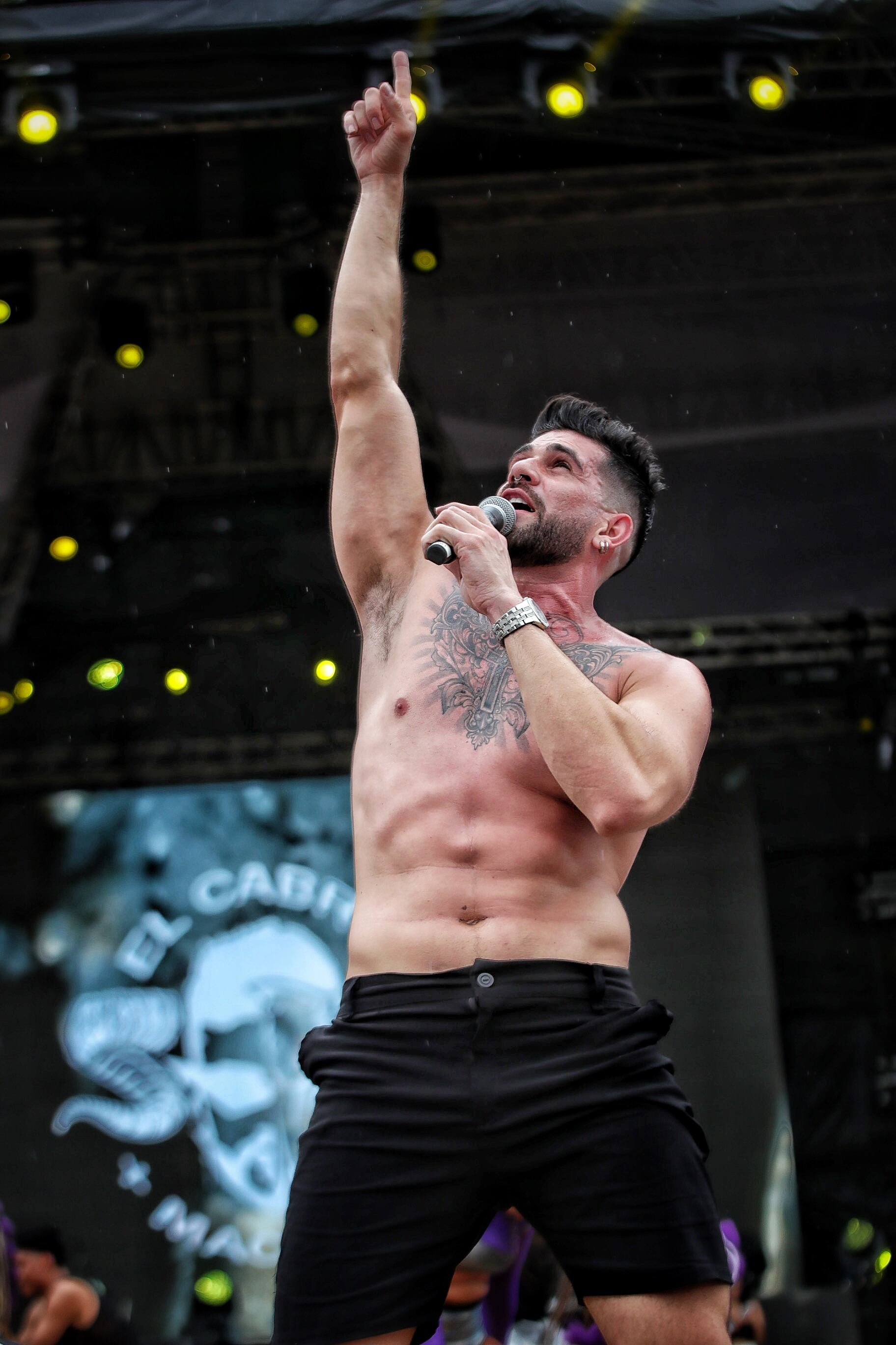 Las gotas se acumularon cuando Bryan Ganoza aterrizó en escena, siendo la figura que el público literalmente pidió en redes para que estuviera ahí (la producción lanzó una encuesta para incluirlo en el festival). La llovizna fue irrelevante, lo mismo que el playback de Ganoza. Lo que importaba era ver a Bryan haciendo lo que mejor sabe: es un gran bailarín y aprovecha sus habilidades para poco a poco irse quitando camisa y pantalón, suscitando los gritos entre la gente.