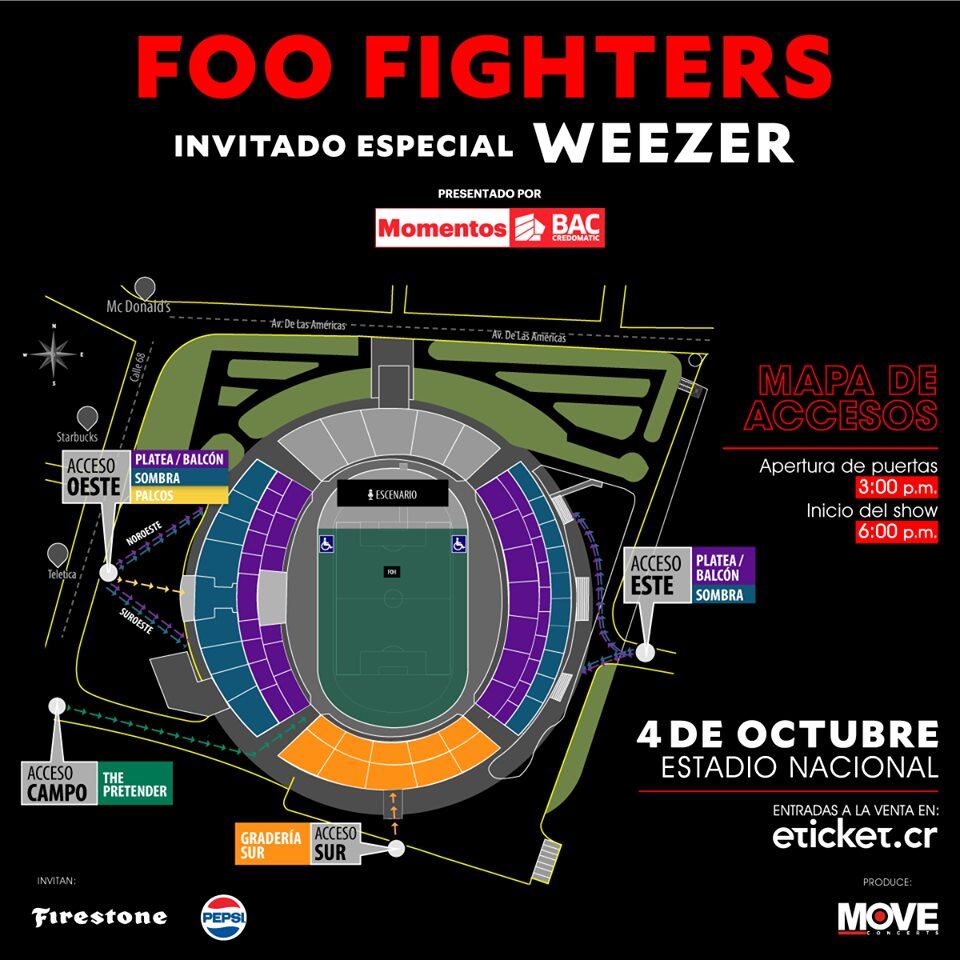 La recomendación de Move Concerts –empresa productora– es que el público llegue con anticipación para que no se pierda de Foo Fighters ni de Weezer, la banda telonera.