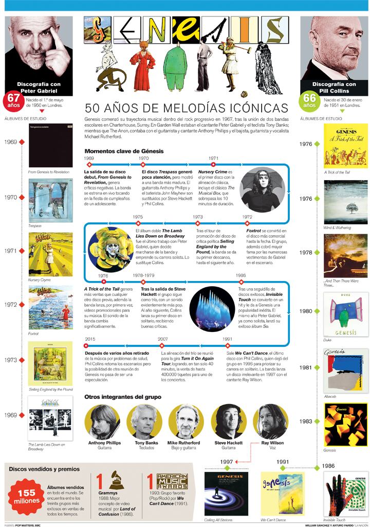 Cincuenta años después de su nacimiento, Genesis ya no existe como banda, pero su legado perenne relata el éxito de un conjunto que sobrepasó fuertes cambios de alineación y cuya relevancia no se redujo a un momento cultural en particular ni a un único género artístico.