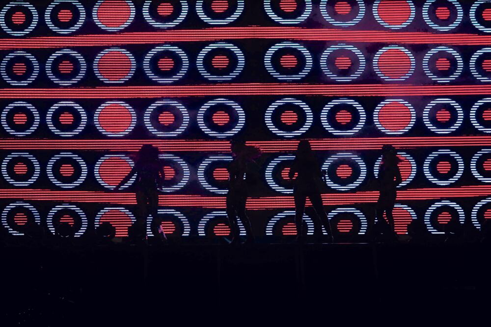 Durante todo el concierto, gracias a una banda en vivo, todos los arreglos de sus canciones fueron un poco más rock y funk que la producción de electropop que usan en sus discos.