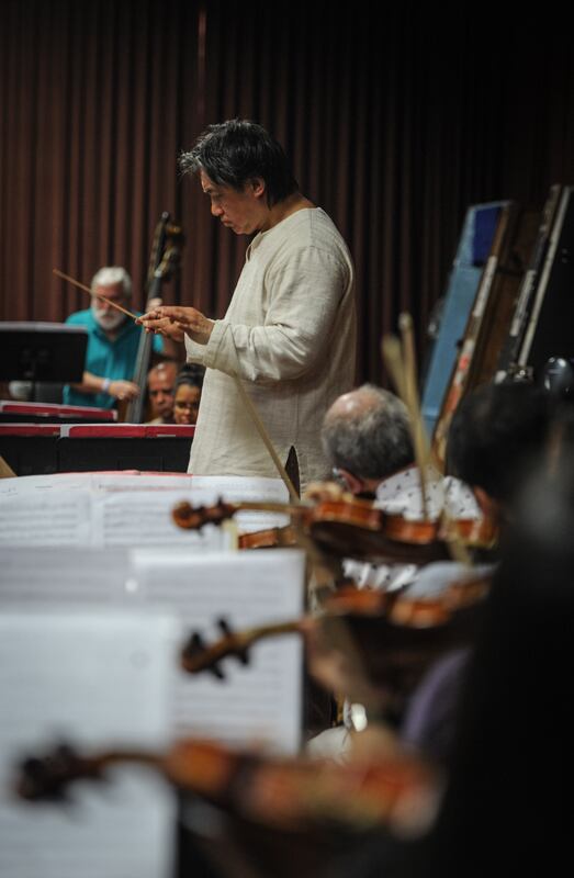 Hondo. En el ensayo del jueves, Komatsu guiaba a los músicos por las jubilosas notas de la Segunda sinfonía, de Brahms. En uno de los movimientos, el clarinete se eleva dulcemente, seguido poco después por las envolventes cuerdas. Como otras obras del compositor alemán, en esta sinfonía incluida en el programa reluce su profundo cariño por cada instrumento de la orquesta.