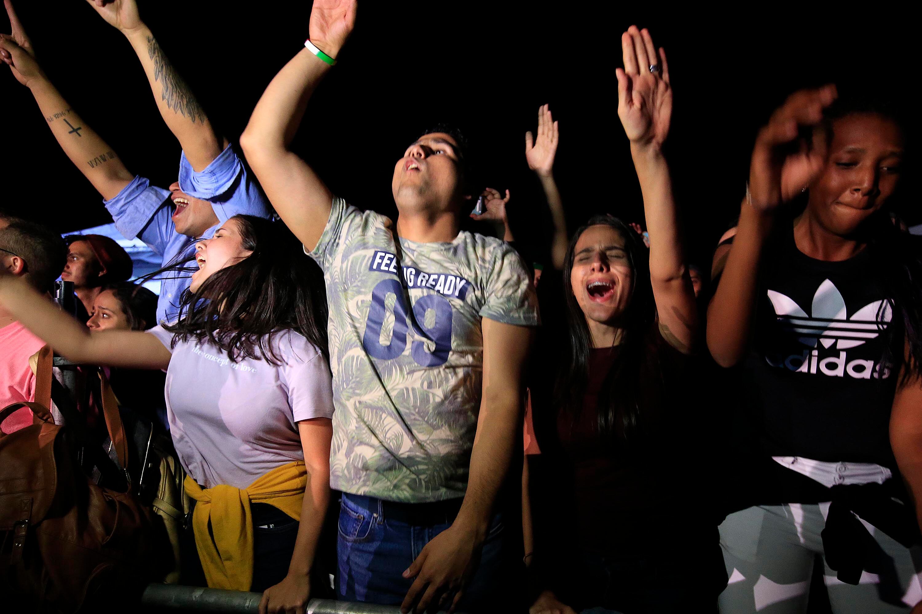 Luego, por 20 minutos, un predicador se dirigió hacia la audiencia para recordarle que más que un concierto, esto era una reunión de adoración para ser celebrada no por fanáticos de la música, sino por una familia.