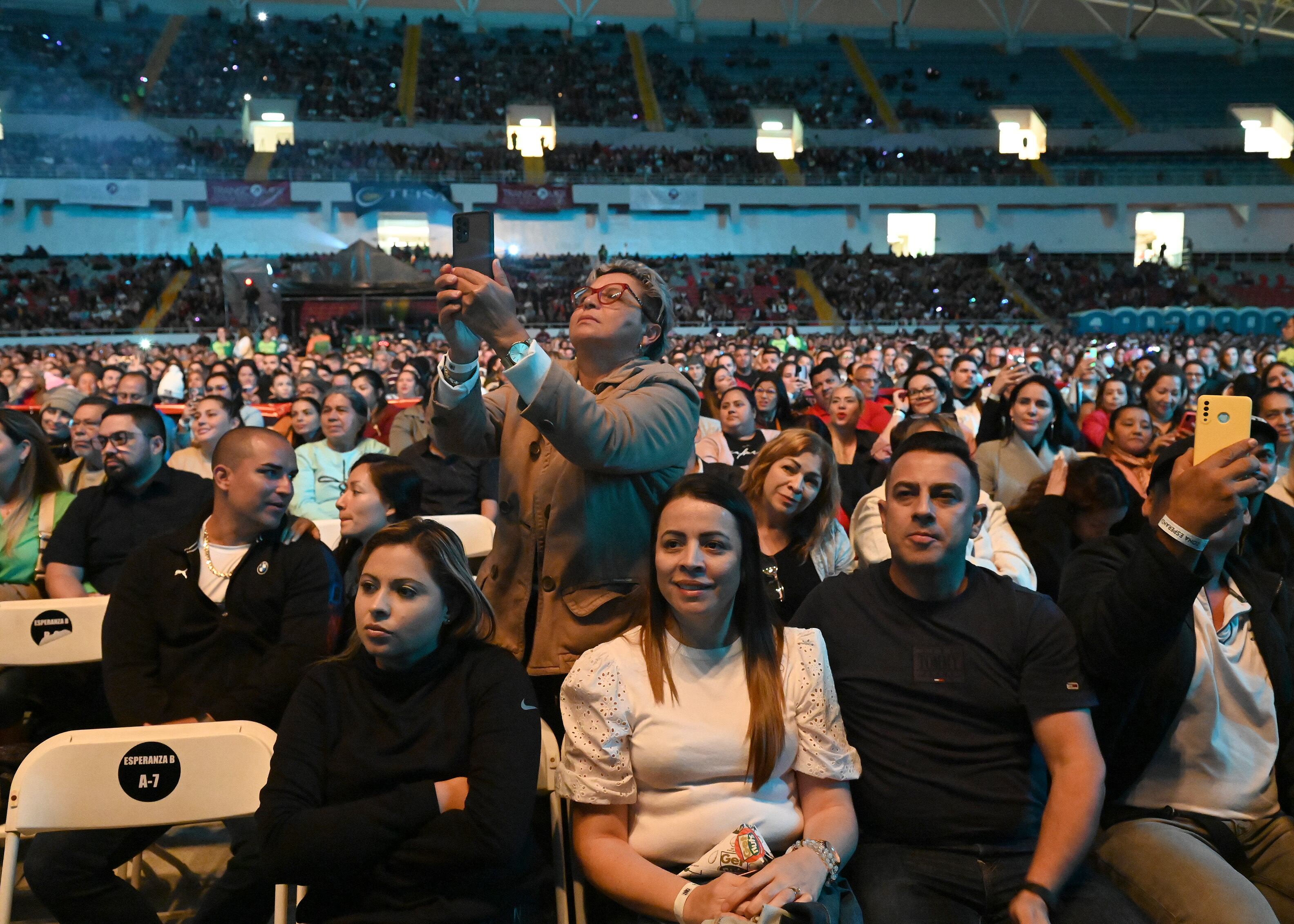 De las hileras de sillas sobresalían las luces de los celulares que capturaban el momento, también se asomaban las manos extendidas en señal de adoración.