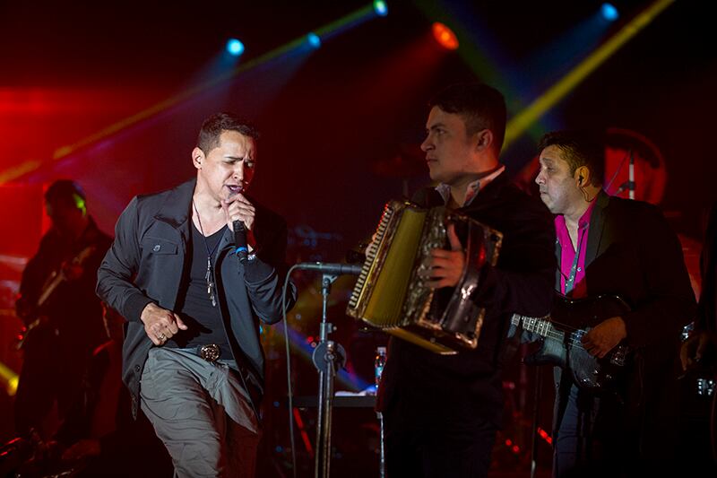 Celedón continuó el espectáculo con el tema Cómo te olvido , acuerpado por el sabor y el talento de su acordeonista estrella, Gustavo García, y el resto de su banda.