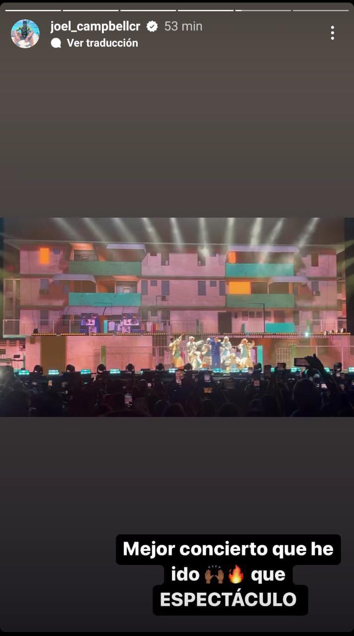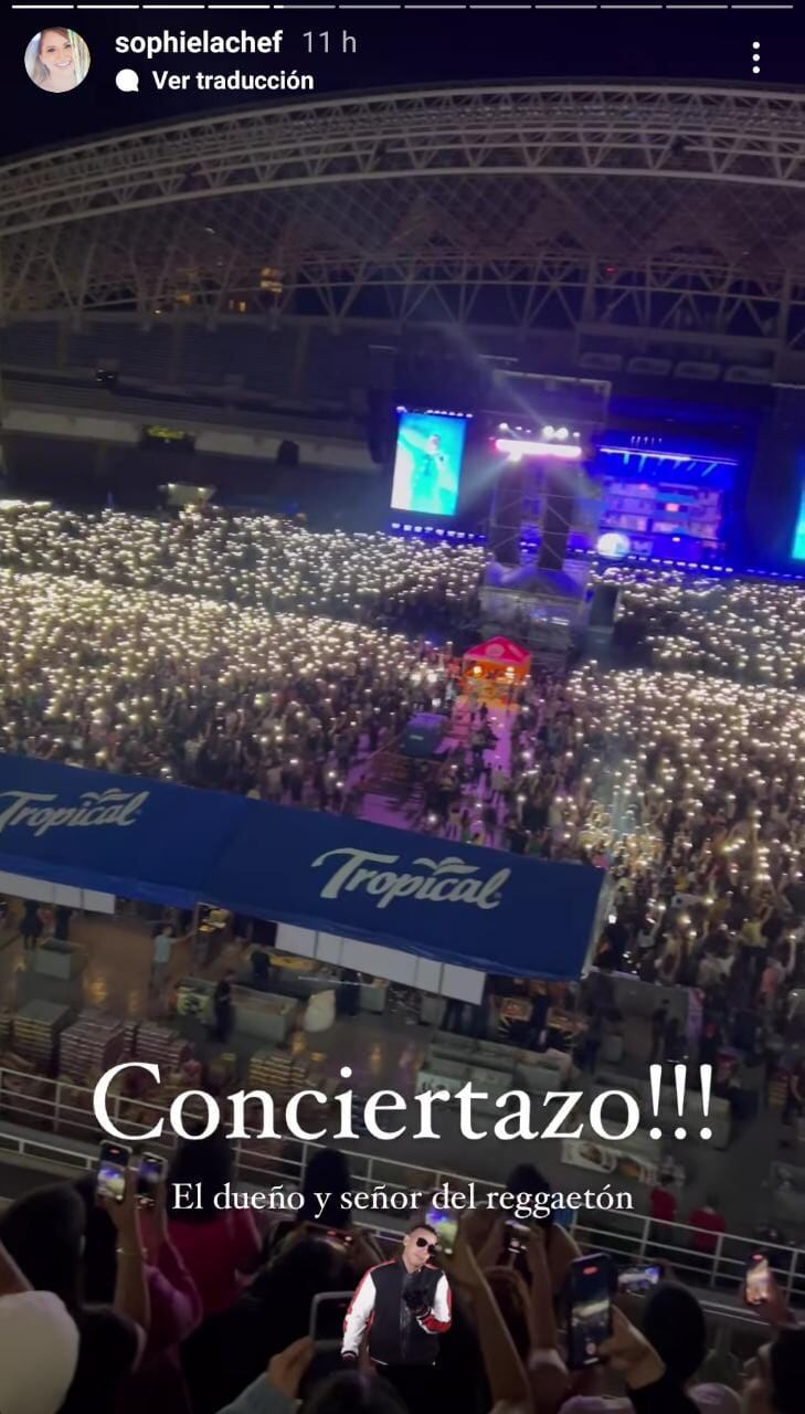 “Conciertazo del dueño y señor del reguetón. El show es de un 100. Maravillosa toda la producción: luces, sonido, pantallas, abilares... Todo impecable”, expresó en sus redes.