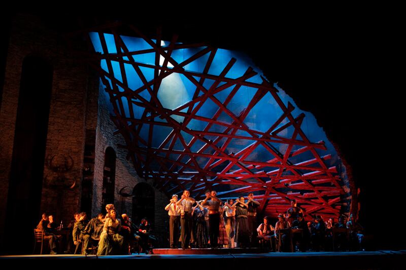Loco de celos por la relación entre Carmen y el arrogante torero Escamillo (el bajo Ildar Abdrazakov ), José desencadena la agitación emocional por la cual es conocida la ópera.