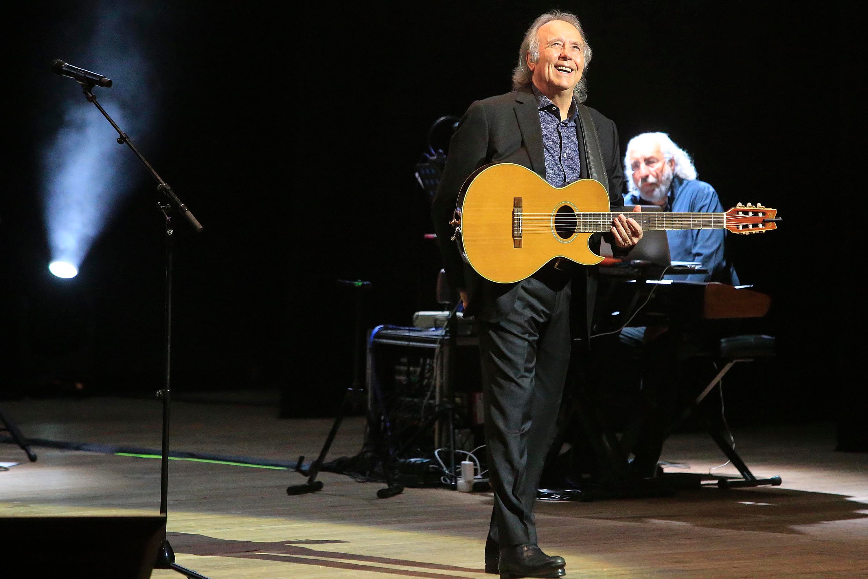 El viernes por la noche fue el primero de los dos espectáculos que el compositor catalán ofrecería en Costa Rica como parte de su gira Mediterráneo Da Capo, que realiza en homenaje a su disco más famoso. El escenario del Teatro Melico Salazar volvió a recibir a uno de sus amigos favoritos para que cantara, en complicidad por su público fiel, temas icónicos del cancionero de habla hispana.