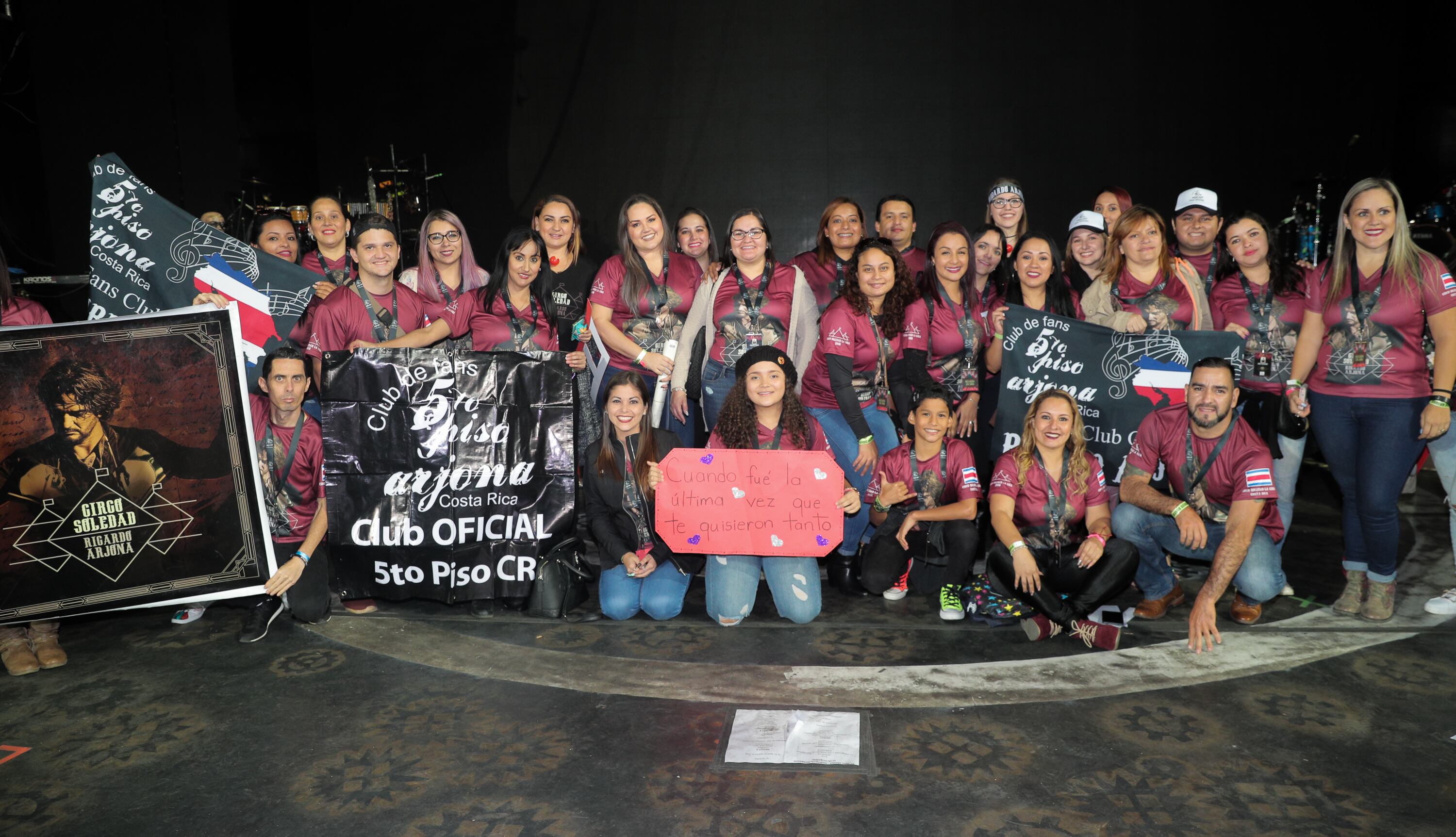 Repartidos entre las localidades experiencia arjona y momentos Credomatic estaban repartidos los 50 fanáticos que integran el club de fans en el país. Algunos de ellos destacaban con divertidas narices rojas que hacían alusión al circo del que serían parte esta noche.