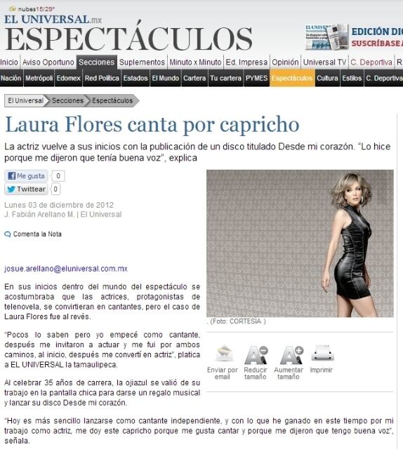 San José (Redacción). Para celebrar 35 años de carrera artística, la mexicana Laura Flores publicó un nuevo disco al que tituló Desde mi corazón, según publicó el diario mexicano El Universal .