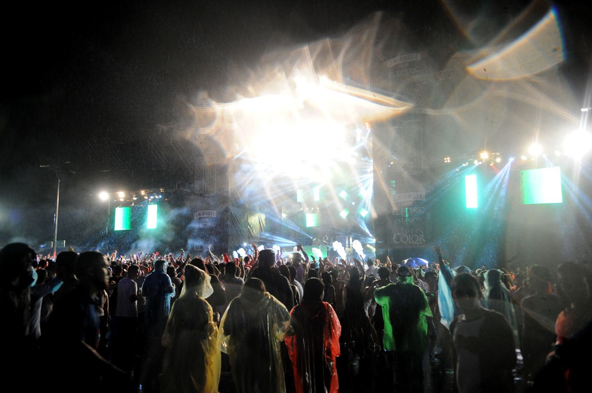 La cantidad de lluvia que caía en ese momento hacía del gesto algo casi inútil, pero, para muchos, ese fue el inicio oficial de la fiesta, el momento en que Life in Color dejó de ser una marca en el calendario y se volvió una realidad. 15 minutos más tarde eran miles los que estaban bailando bajo la lluvia.