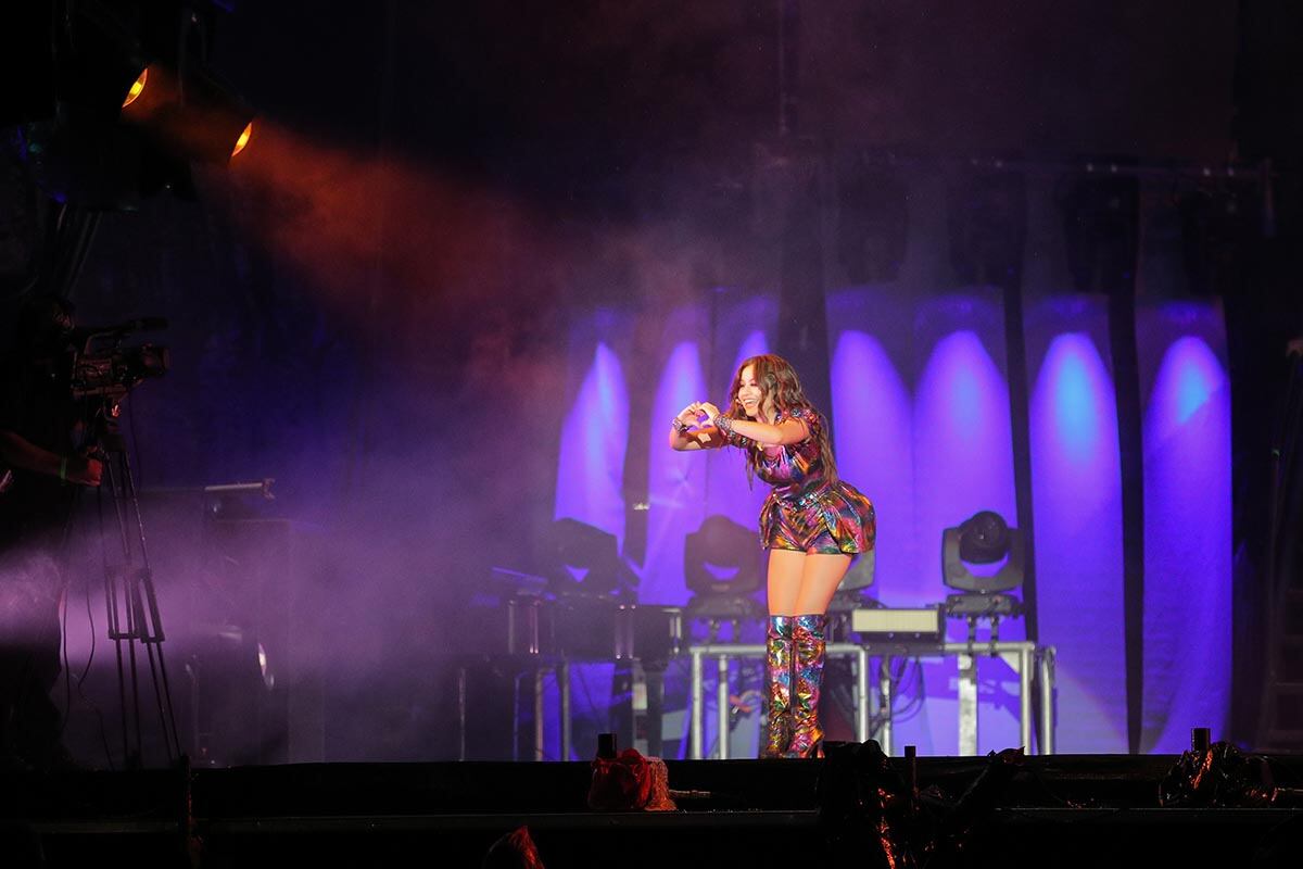 El show no podía terminar sin estas sentidas palabras de Luna: "Es hermoso poder estar aquí y sostener esta bandera", dijo Luna a la audiencia, con la tricolor en sus hombros.