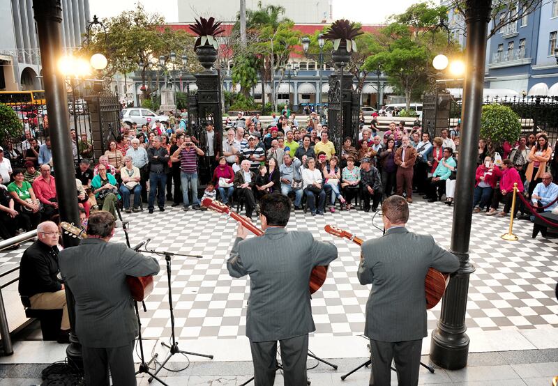 Con las notas de Motivos , el Trío Alma Latina abrió una temporada de verano durante la cual el teatro se convertirá en salón de baile cada viernes a las 5 p. m. “Es una forma de decirle al pueblo que tiene derecho de venir. El Teatro Nacional es de todos los costarricenses”, celebró Aníbal Ulate, de 68 años.
