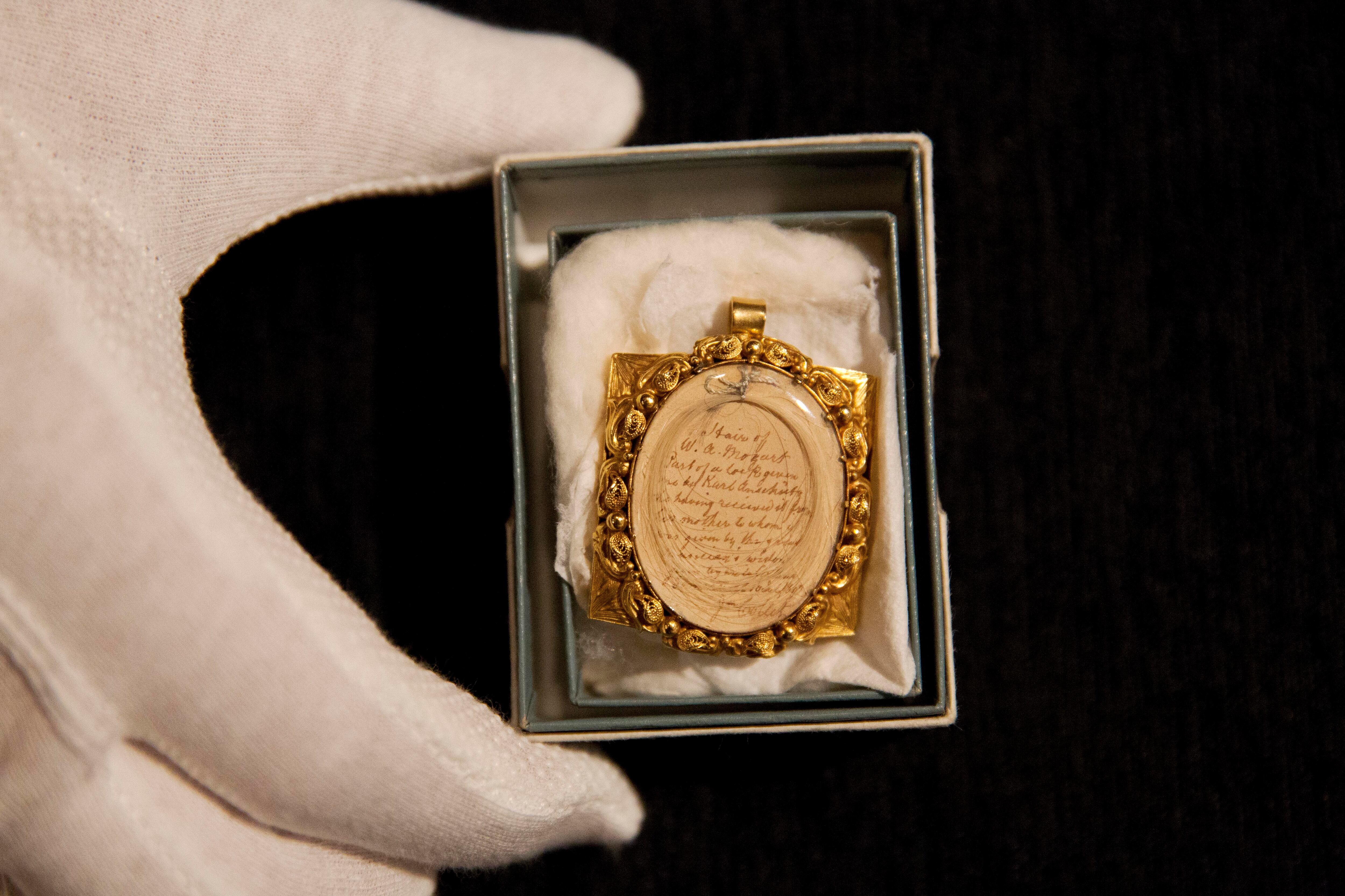 La casa de subastas Sotheby's ofrece un mechón de pelo de la cabeza de Wolfgang Amadeus Mozart, conservado en un relicario dorado.