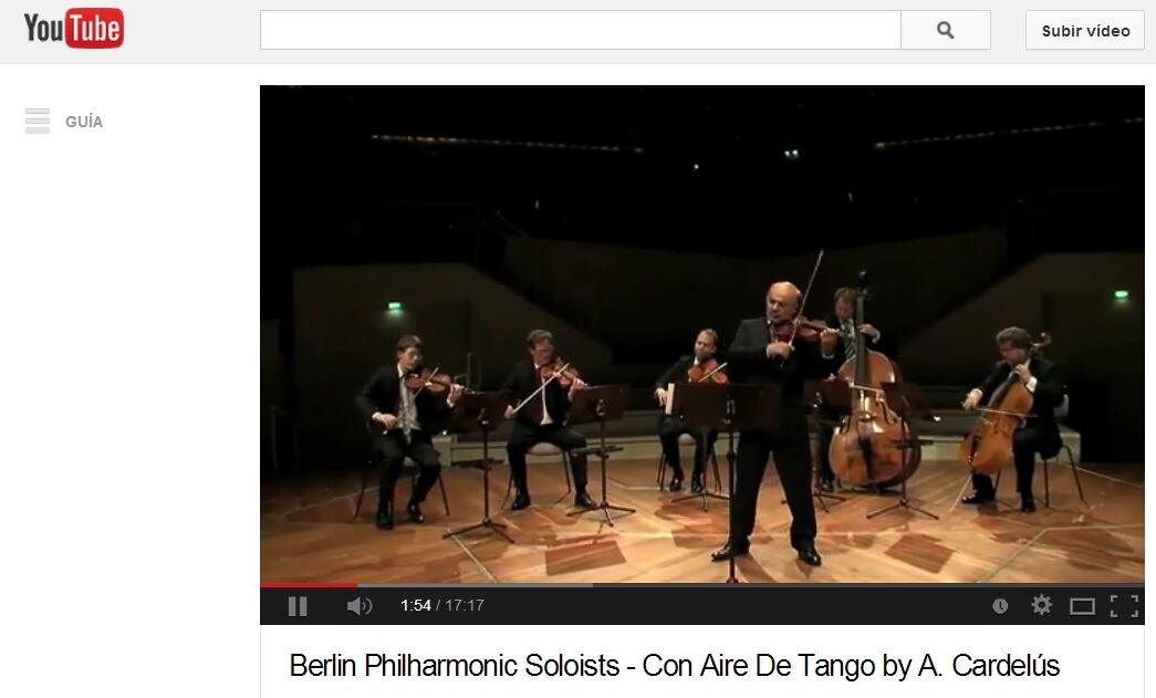 Hace dos años una búsqueda en internet fue el primer paso de un viaje que hoy ha culminado con el estreno en YouTube de “Con aire de tango” , una composición que le encargó el primer violín de la Filarmónica de Berlín, Laurentius Dinca, al compositor y pianista madrileño Arturo Cardelús (1981) .