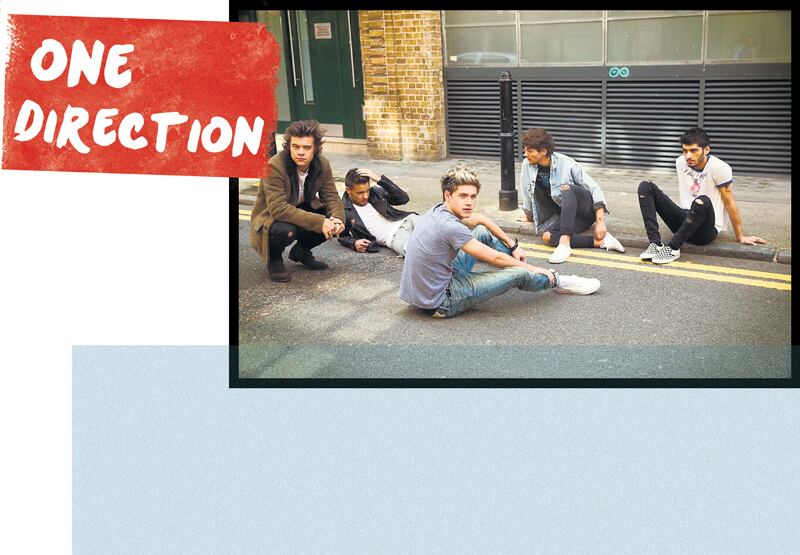 Una infografía publicada en el periódico británico The Guardian , en el 2012, dice que el boy-band inglés One Direction es famoso por tener “fans gritonas, un cabello impecable y el amor de las señoras”.