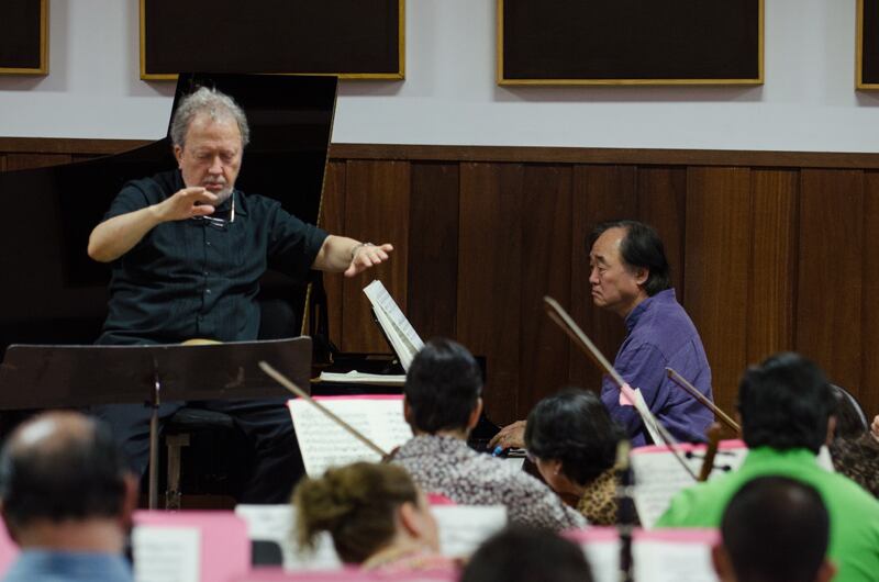 El director John Nelson y el pianista Kun Woo Paik son dos fuerzas complementarias. Nelson es un personaje enérgico, gestual y locuaz, mientras Paik es sereno, estoico y reservado.
