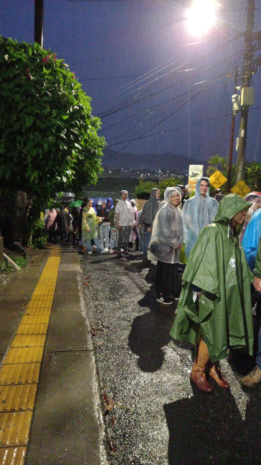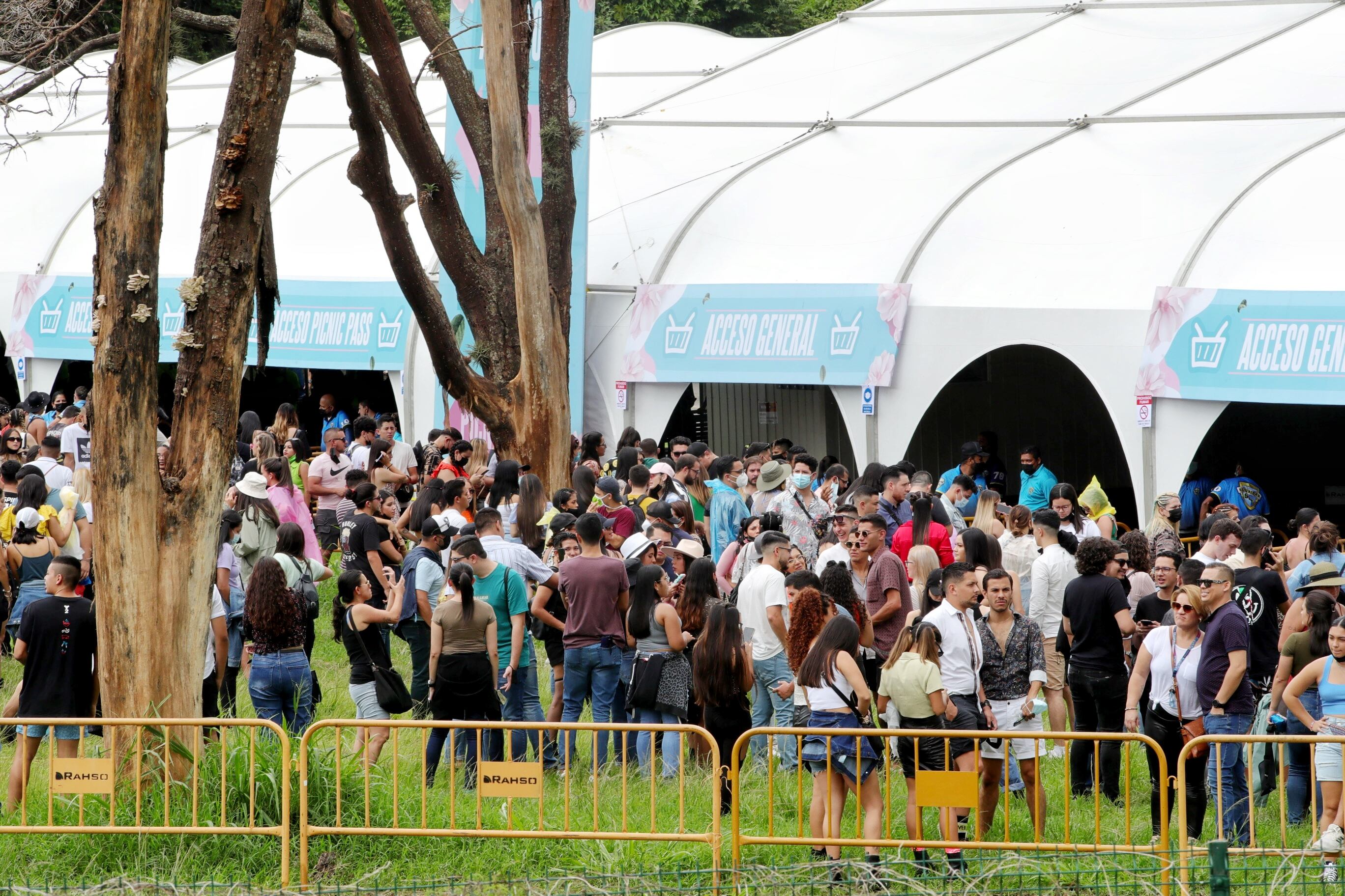 Pocos minutos antes de las 6 p. m., una fila, de al menos 200 metros, se formó en las afueras del Centro de Eventos Pedregal, las personas, que adquirieron entradas para la categoría VIP para el festival Picnic, aguardan bajo la lluvia para ingresar.